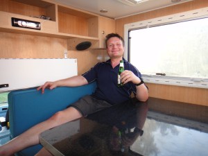 We set about spending the remainder of the afternoon and evening trying everything in the camper and on the truck to check it all works and identify any snags. There were a few. The high point of the afternoon was realising what a great place for sunbathing the roof is and how nice it is having a cold beer from the fridge up there. The other real plus is that the shower is fantastic – high pressure and oodles of hot water – Result.