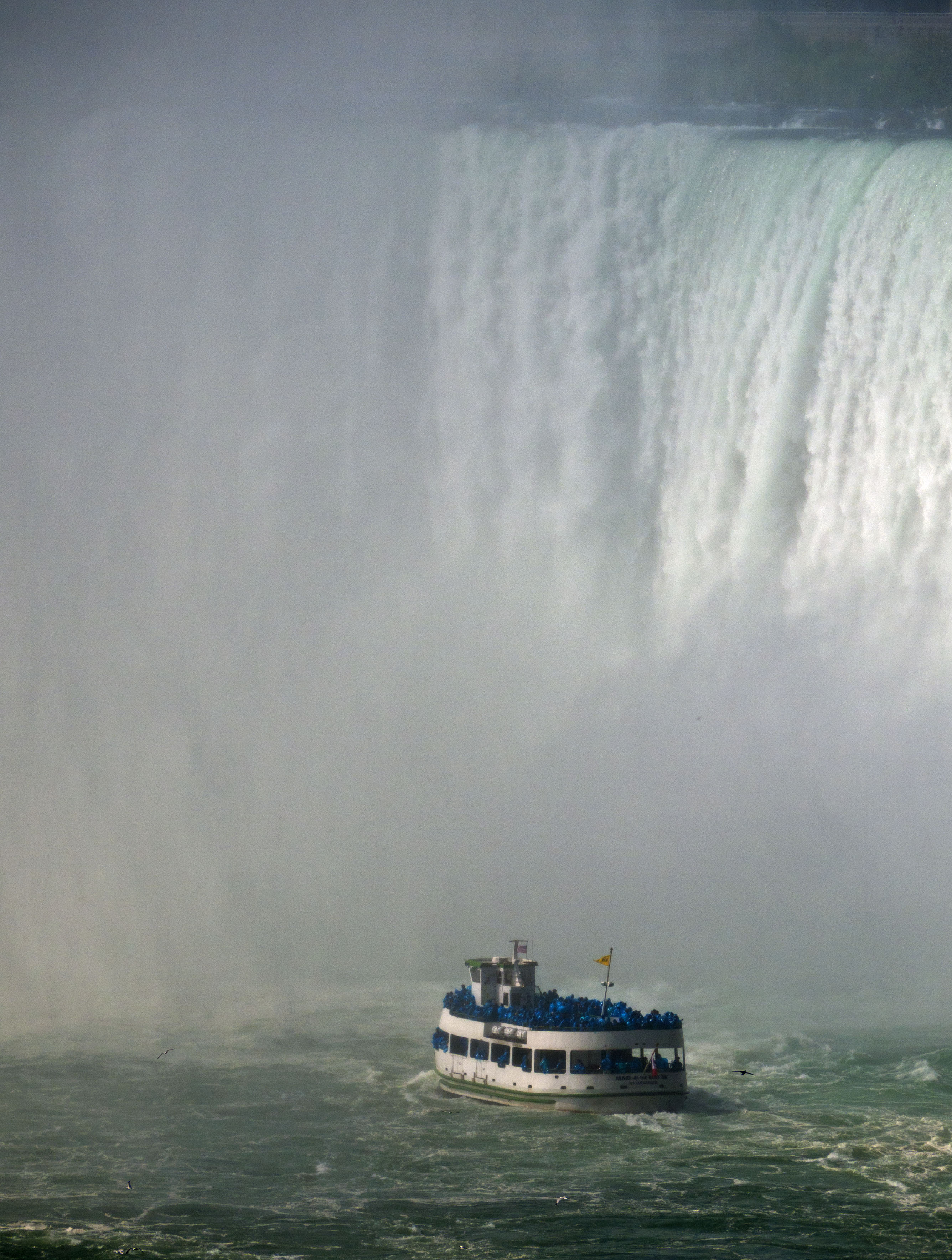 We wandered up and down the viewing area and then decided to fork out for the Walk beneath the Falls which was CAD15 each. This takes you down in a lift to a platform right next to the bottom of the falls and then lets you walk through a tunnel with 2 viewing areas right behind the falls themselves. They give you very natty yellow ponchos made of plastic to wear which make everyone look like wet canaries. To be honest this was a little disappointing because the two viewing areas behind the falls all you can see is a mass of crashing white water. I was hoping to get more of a sense of the size of the falls from here but all you see is a very small portion.