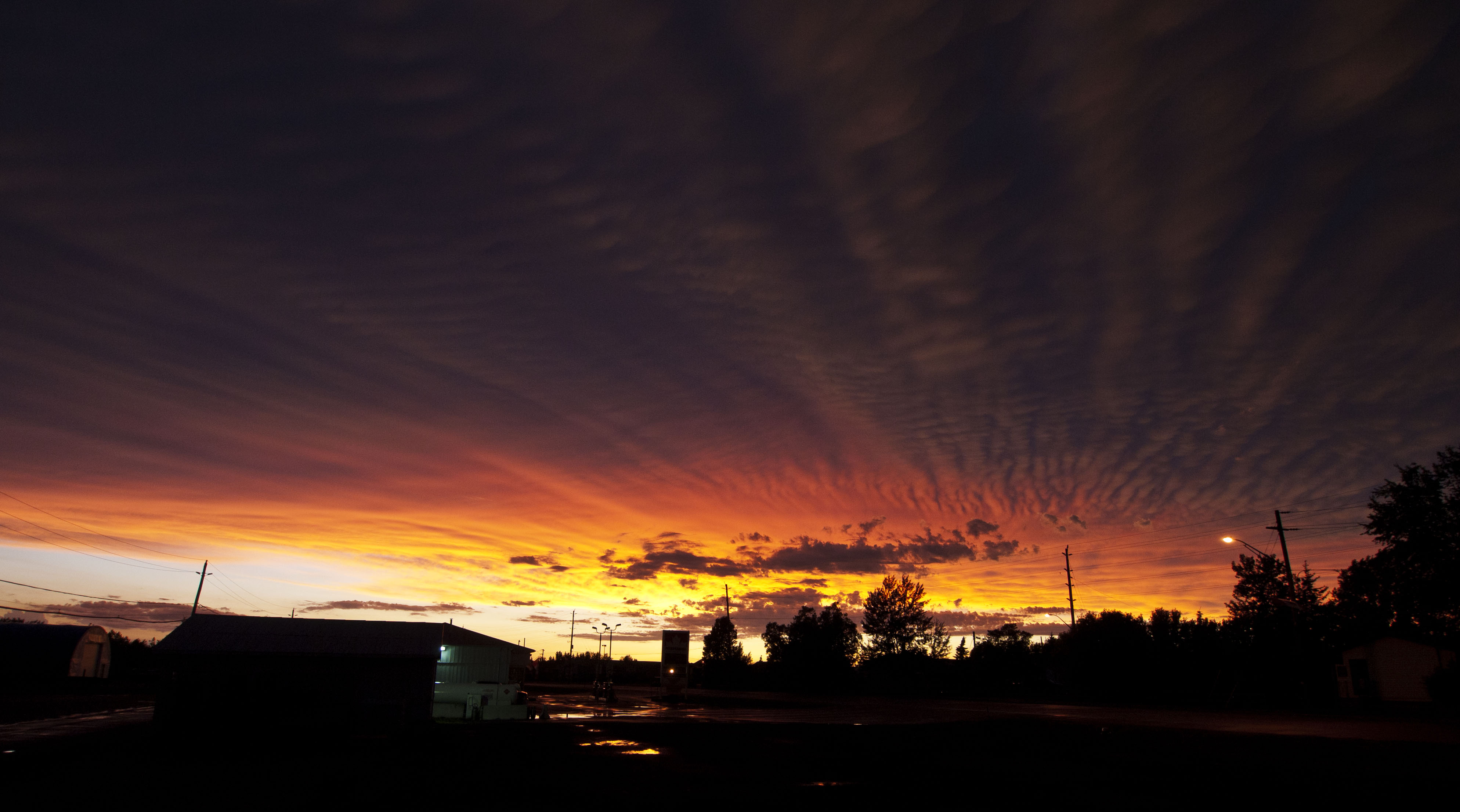 We drove about 20km’s out of town and got to a small village called Emo where we found a friendly petrol station who are happy for us to stay in their lot. Just as we parked we discovered the reason for the darkness. The wind rose from nothing to gale force in seconds, rocking the camper from side to side, the heavens opened and lightning criss-crossed the sky. This was one of the biggest storms I’ve ever seen. Mr Bulos – if you were here it definitely wouldn’t have been your thing. Half an hour later it had seriously calmed down and the setting sun came out and a bea