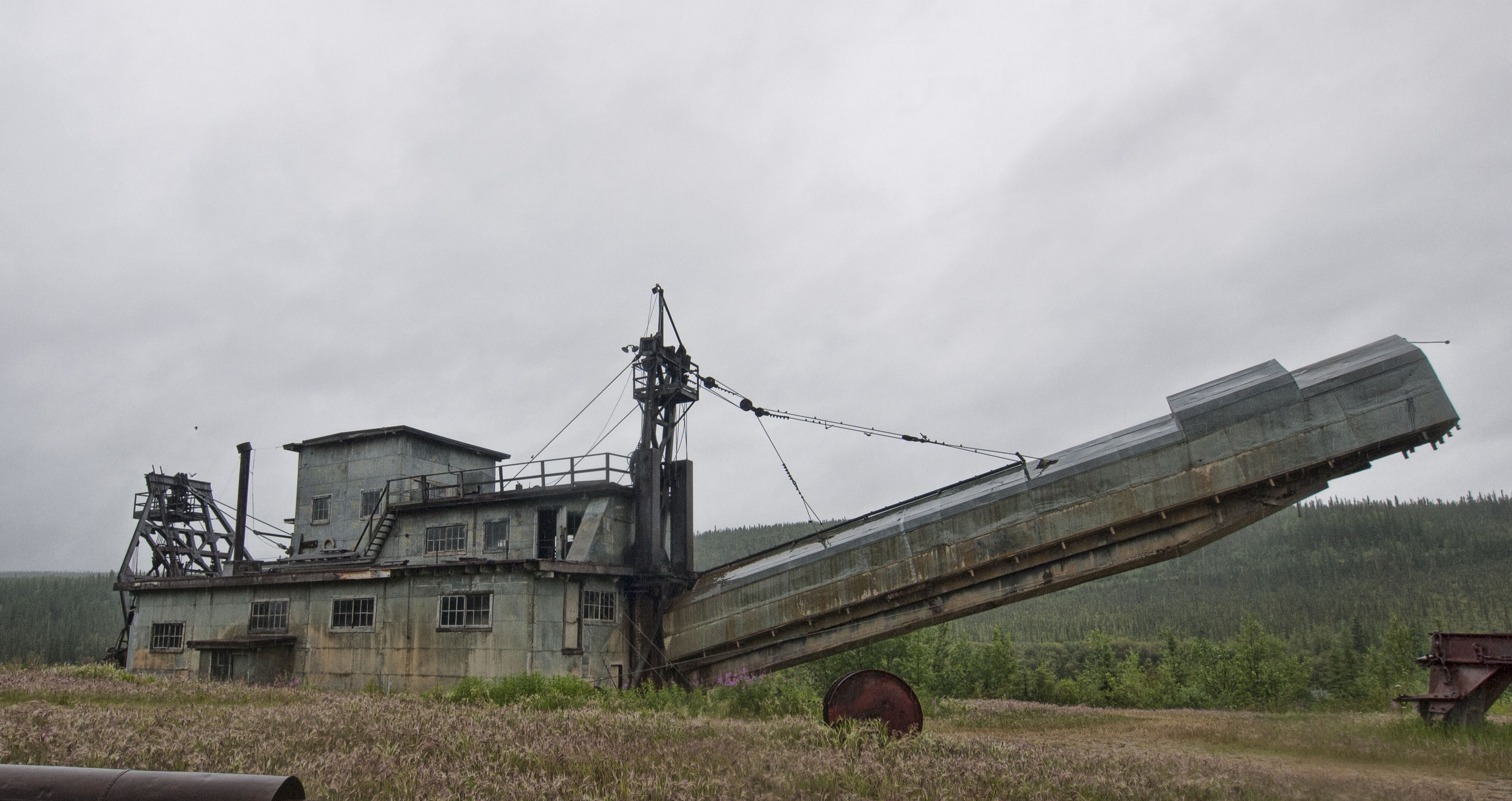 Half way back to the Alaska Highway is the town of Chicken (so called because of the number of Ptarmigans in the area – but they couldn’t spell that !). There is a tiny trading post here and Alaska’s Dredge No.4 because this is another gold mining area. We had passed a few active claims on the way through.
