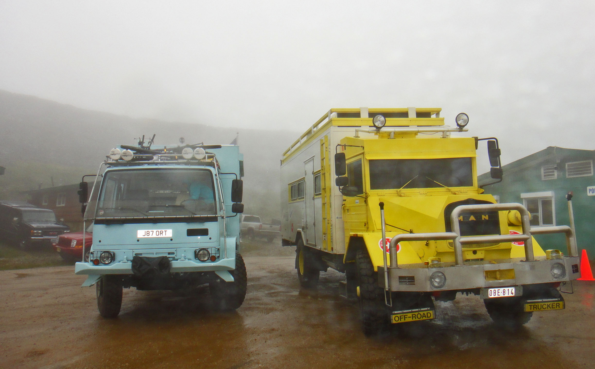 From Dawson into Alaska runs one of the most beautiful roads in this part of the world. It climbs sharply from Dawson to run along ridge line for 100km before reaching the border with Alaska at 1300m altitude. This sounded  brilliant however we woke in the morning to incessant rain and fog/low lying cloud.