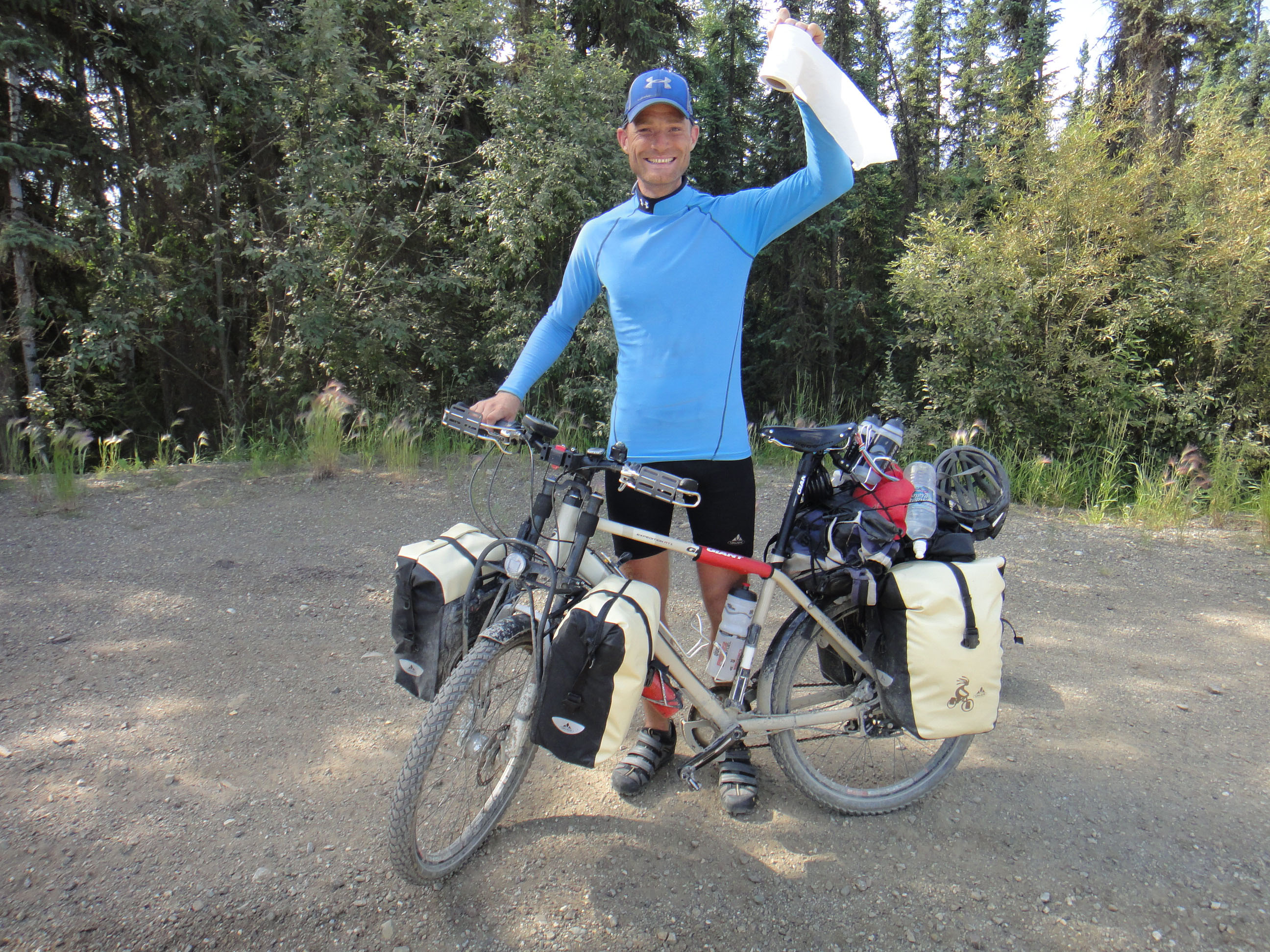 Soon after starting we bumped into a dutch guy named Art who was resting next to his bike after having spent a week cycling from Deadhorse. He is on his way down to Argentina so we may cross paths again. His website is www.todayyoucan.nl He looked pretty knackered  already. We helped him on his way with some toilet paper and wish him the best of luck.