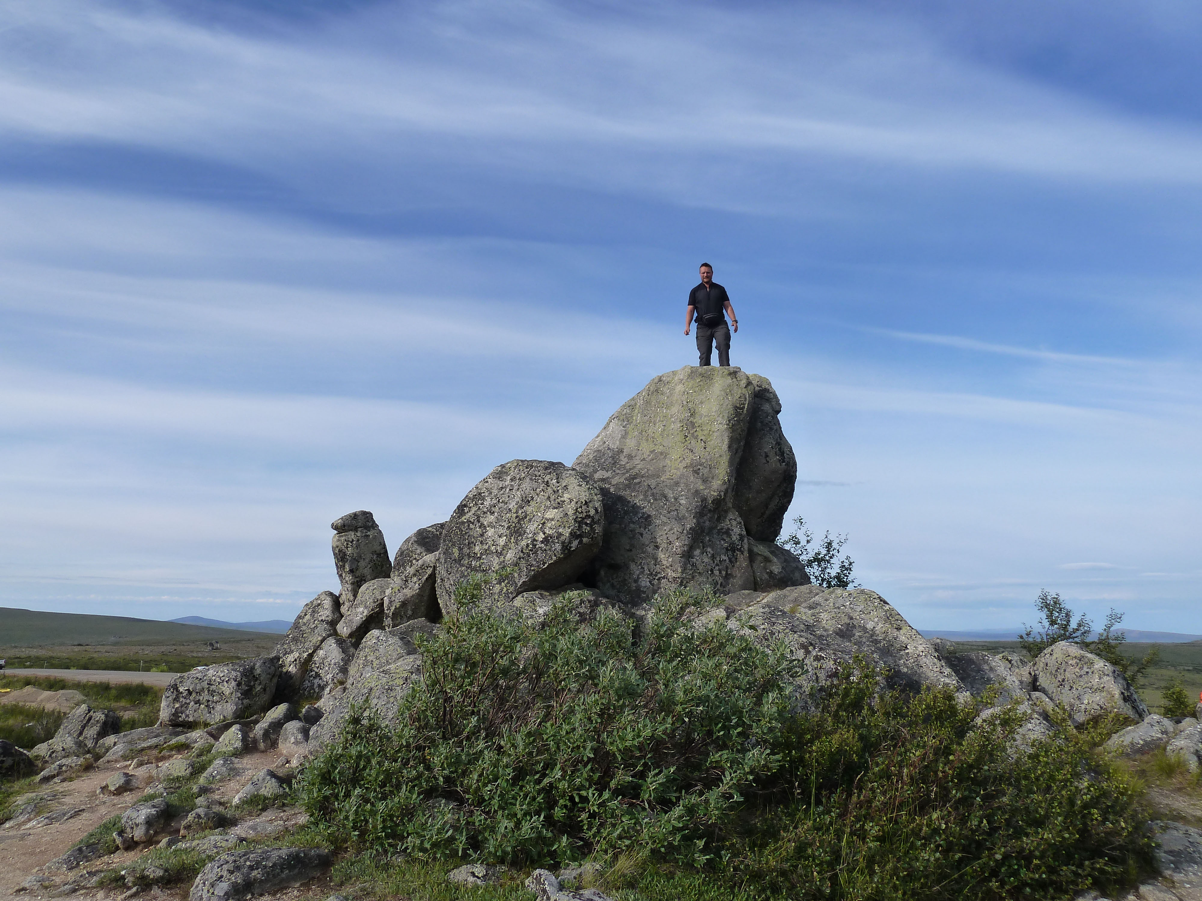 The road climbs to an upland Plateau at around 90 miles which is punctuated with Tors and resembles Dartmoor. Shortly after this you enter the Arctic Circle and there is an obligatory picture stop.
