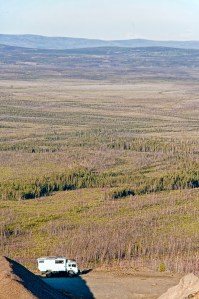 The Dalton has recently been made famous by the Tv series Ice Road Truckers which is about the truck drivers who travel it in winter. In summer the road is a rough road which is about 25% potholed tar and 75% gravel of varying quality. Parts of the road are pretty rough and others are surprisingly good quality although the going can change mile by mile. In the summer you can make this road with a normal car – if it doesn’t rain too much – however almost everything up here is four wheel drive and I wouldn’t risk it without. You are a long way from any help so two spare tires are essential – we picked up a nail and another chunk of metal in our tire treads so the chance of getting a flat Is high.
