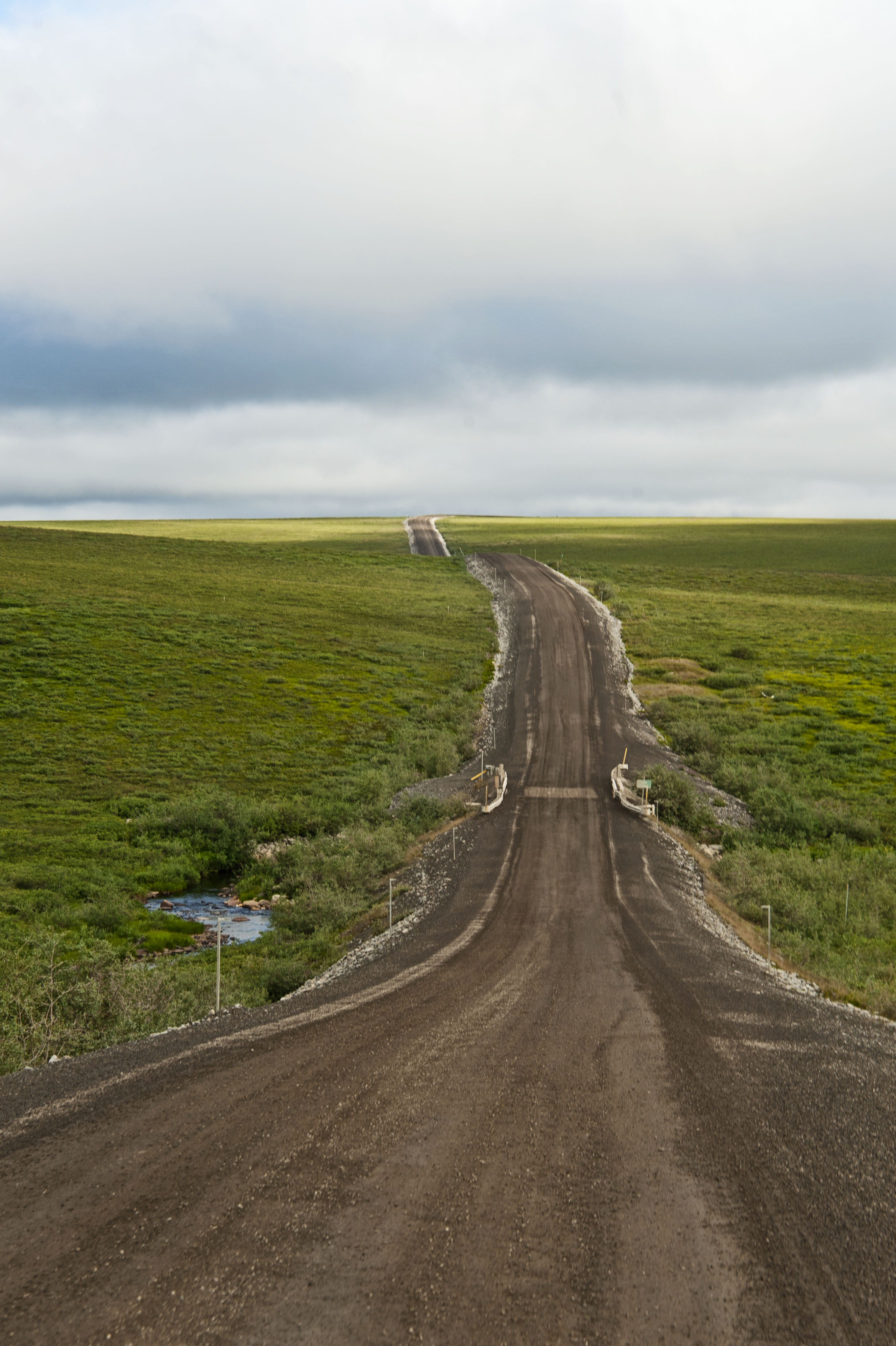 The “haul road” was built in 1974 to service the building of the Trans-Alaska Pipeline. The Pipeline was built to transport the newly exploited oil from the North Slope of Alaska to the ice-free port of Valdez for distribution to lower 48 refinerys. The road was exclusive to the oil companies until 1995 when it was opened to the public all the way to Deadhorse in Prudhoe Bay.