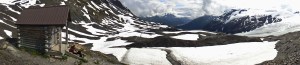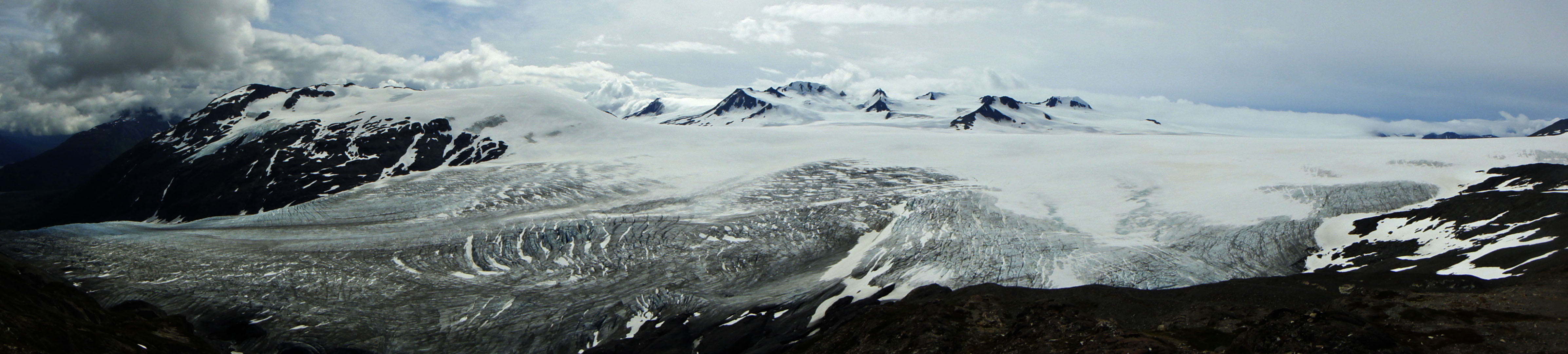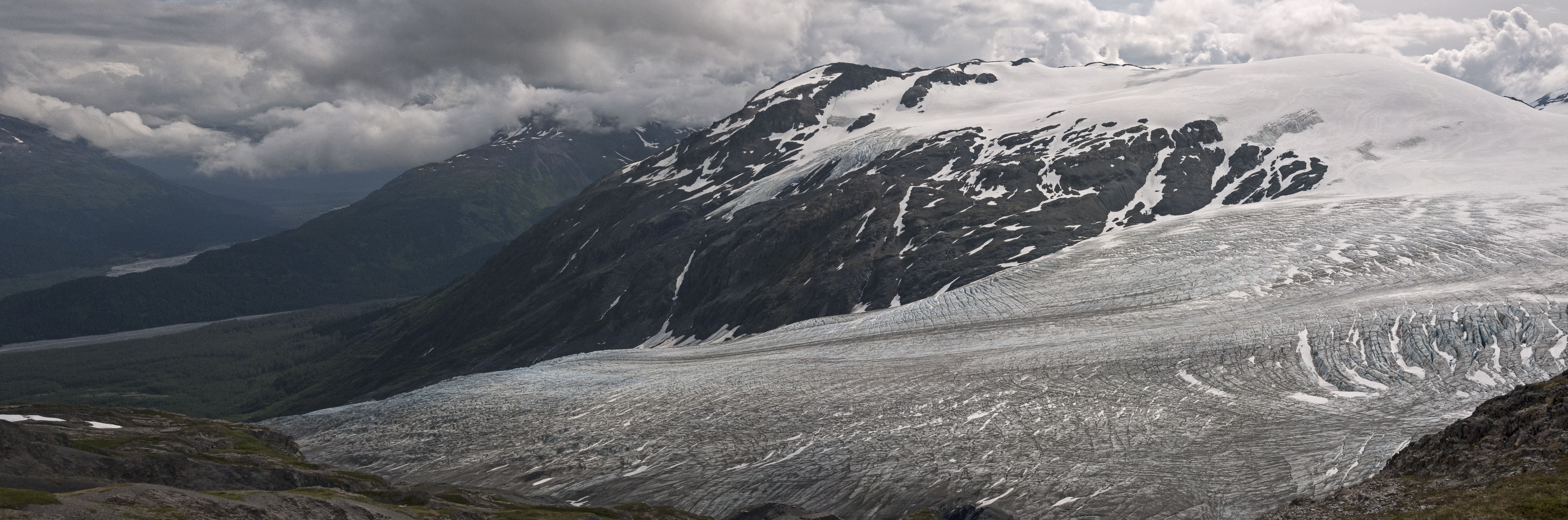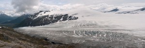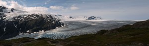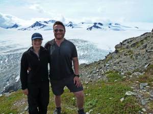 We know that great views mean that you have to work for them – and that means walking uphill. About half way along the paved trail is an unpaved trail leading sharply uphill which takes you way above the Exit glacier itself and up to the Harding Icefield which is the source of the glacier. This trail is 4 miles long of constant uphill and over this distance you climb over 1200 metres. The payoff for this hard hike are stupendous views over Exit Glacier and a view into the world of perpetual ice. We knew that this was the trail for us.