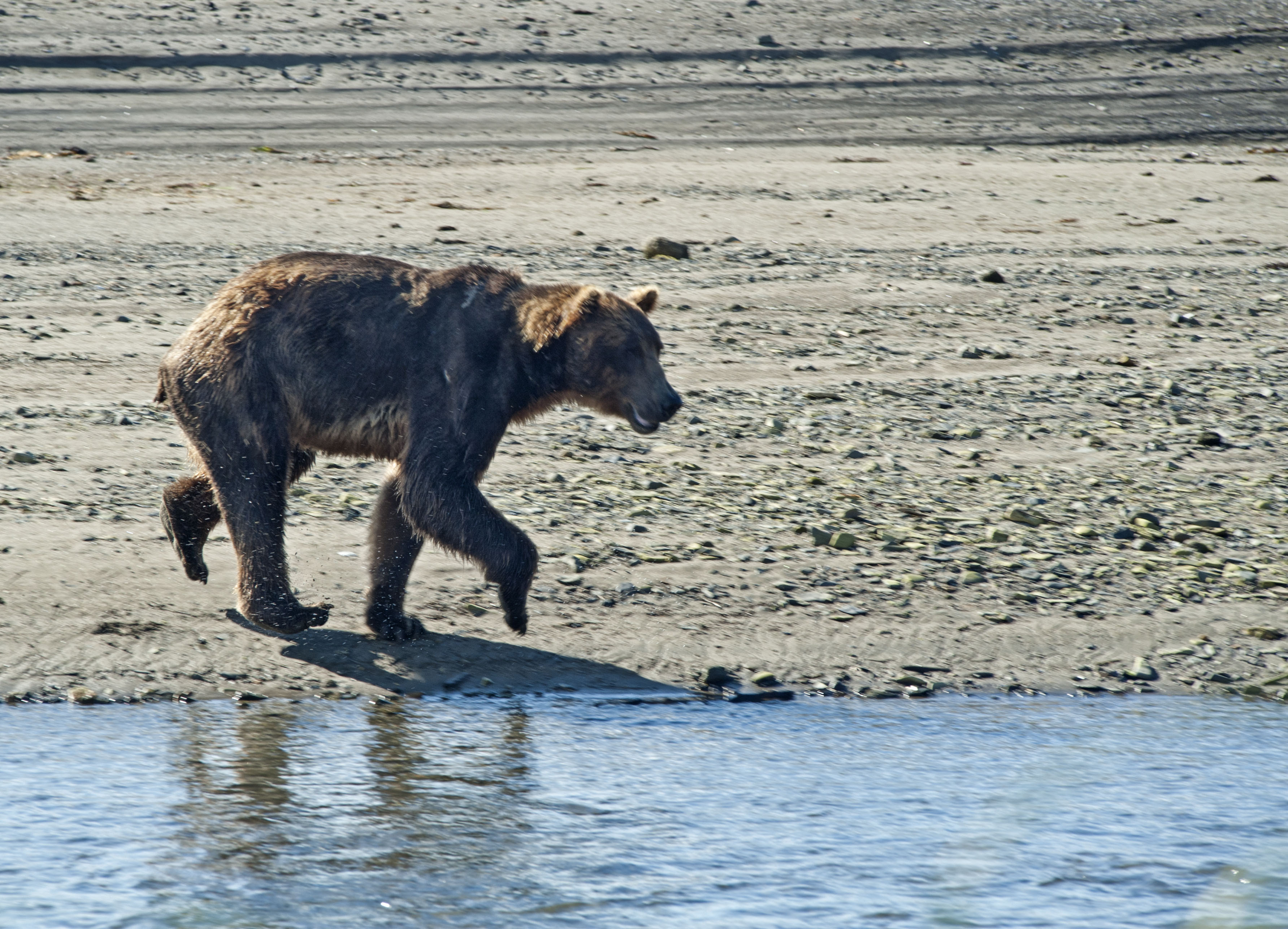 It didn’t take long to see our first bear which was down the beach walking away from us. We only really got a glimpse of its butt though.
