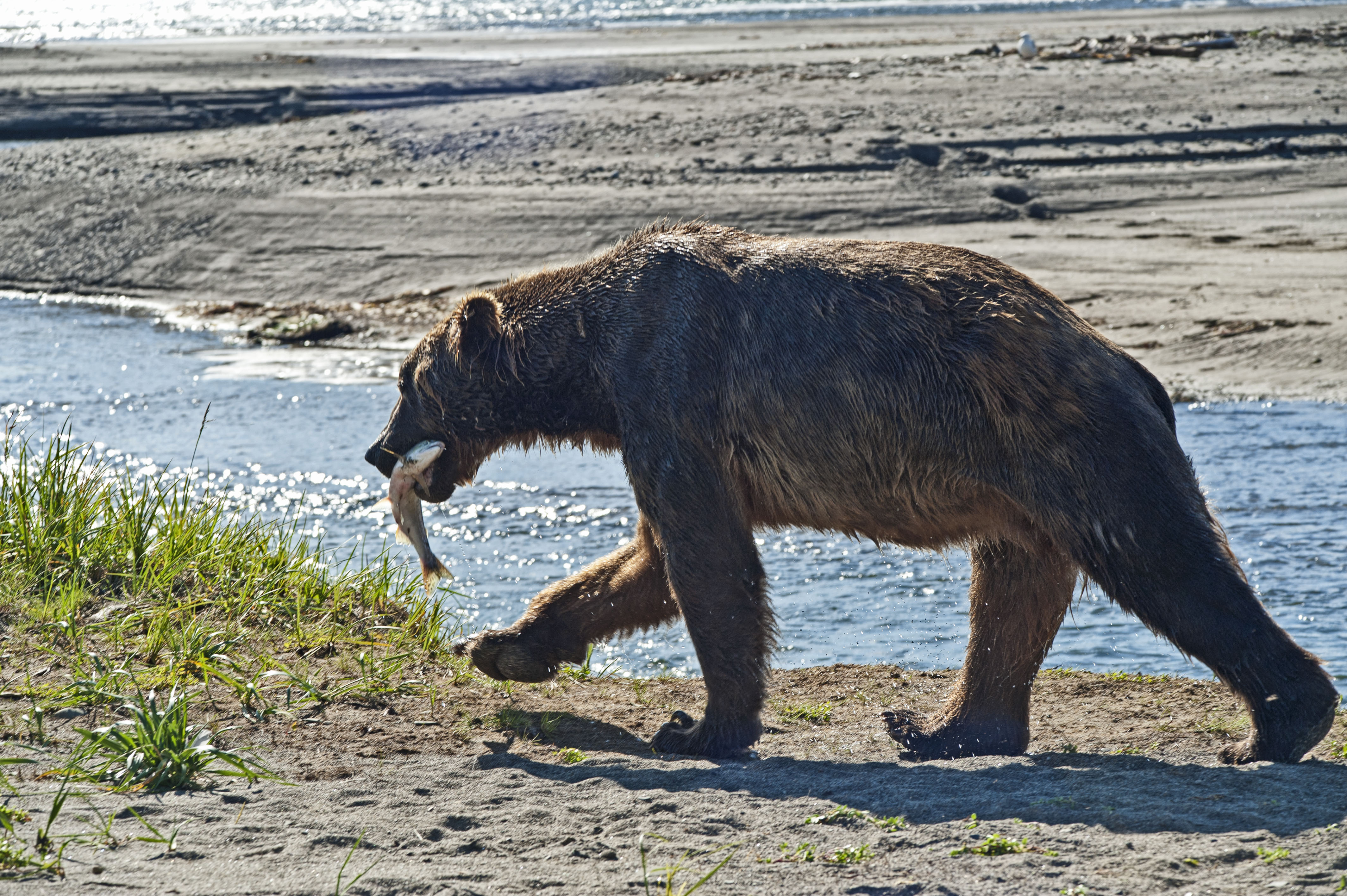One of the things that we had always wanted to do in Alaska was spend some time bear viewing. The best place to do this is in Katmai National Park. There are two different areas where Grizzly bears can be seen reliably, on the coast and Brooks Falls in the interior. We decided that the coastal area was where we wanted to go. Most of the trips out to the coast are day trips but one place is a permanent camp where you can stay overnight. This is called Hallo Bay and was the location used by the BBC to film the bear footage for the TV series ‘Life’.
