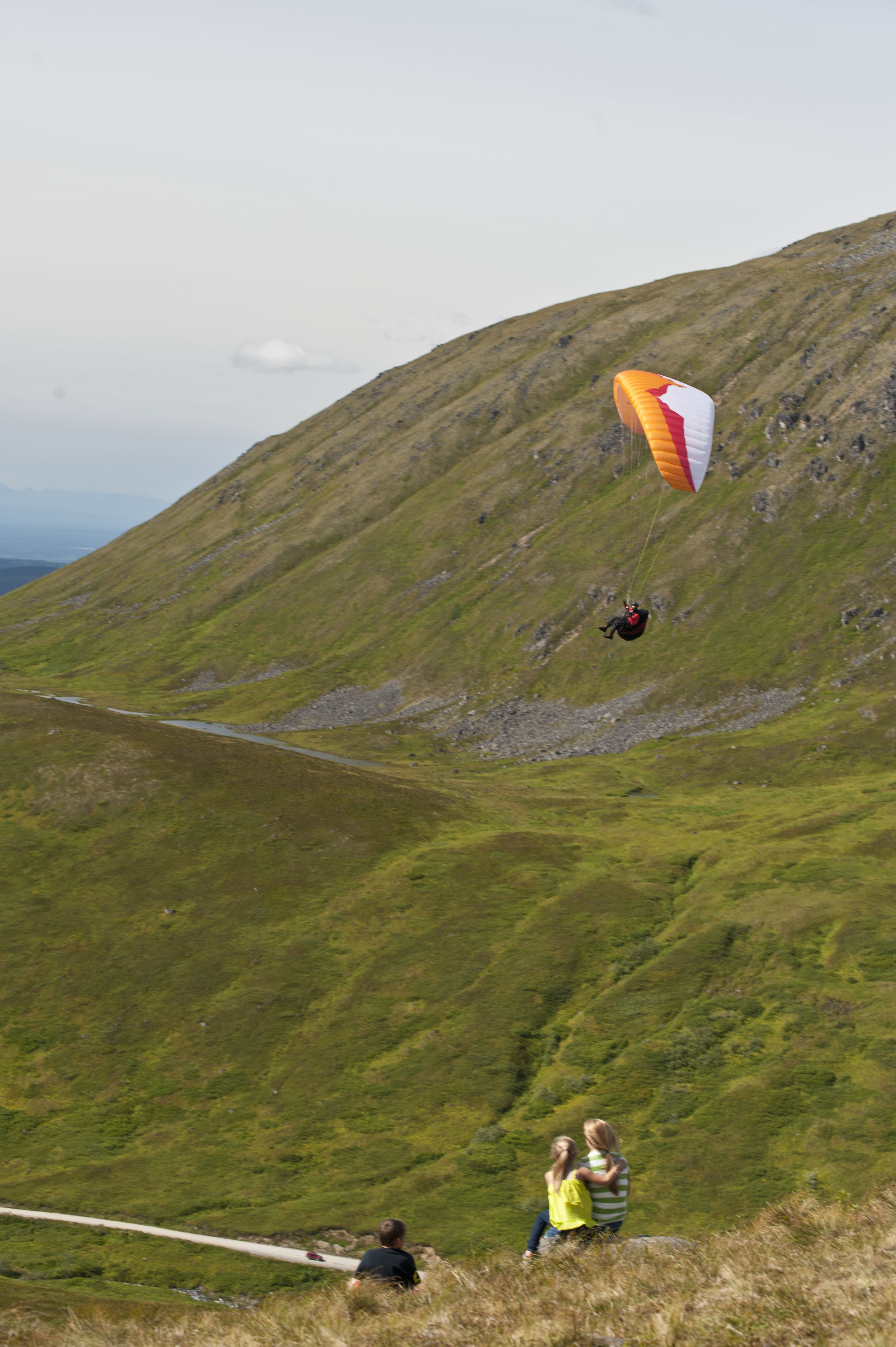 At the top of the pass is a small lake called Summit Lake where we stopped for lunch and we watched some paragliders. One guy was out for his first time – and it showed – while another guy was clearly very experienced and made it look easy.