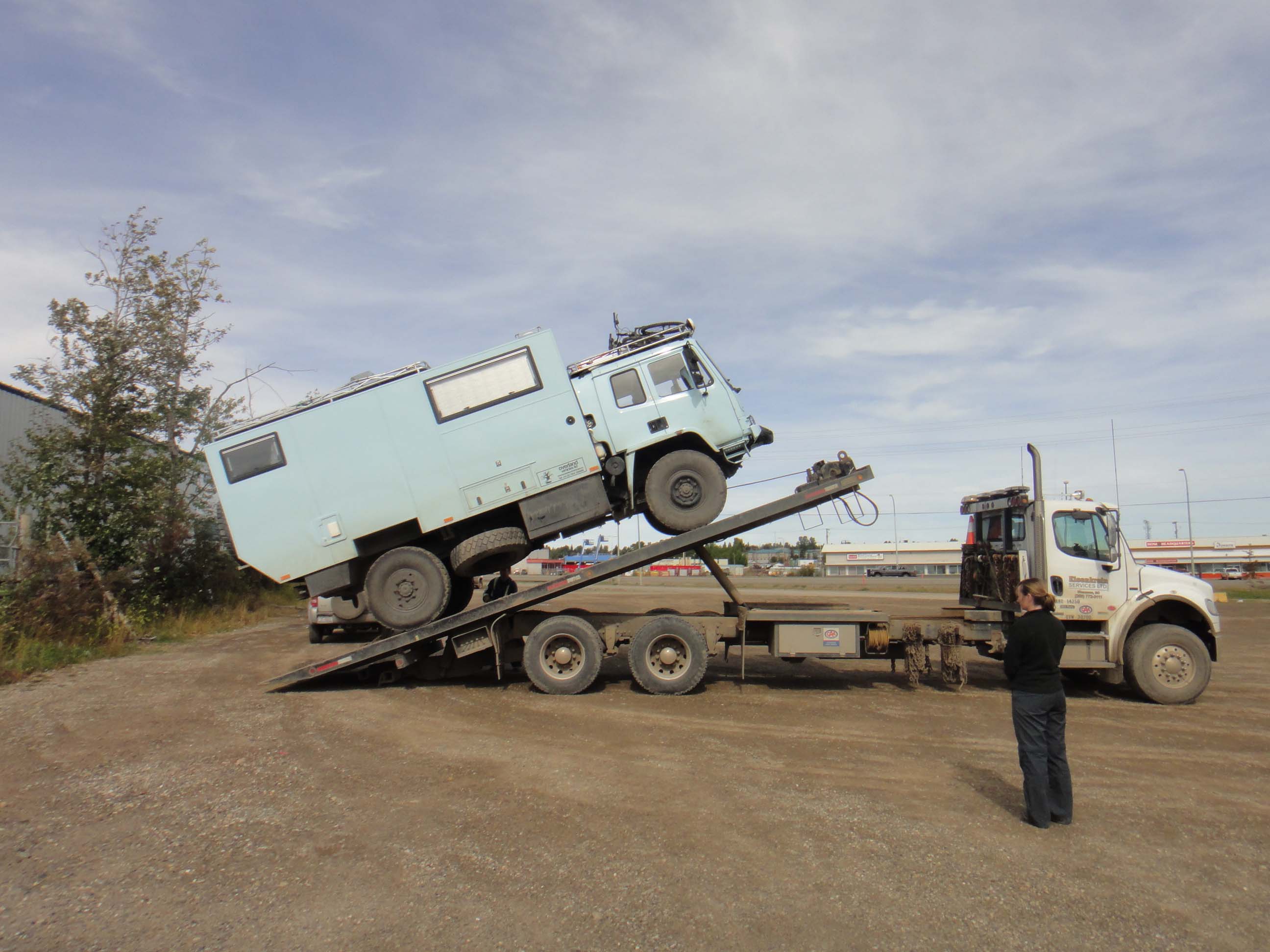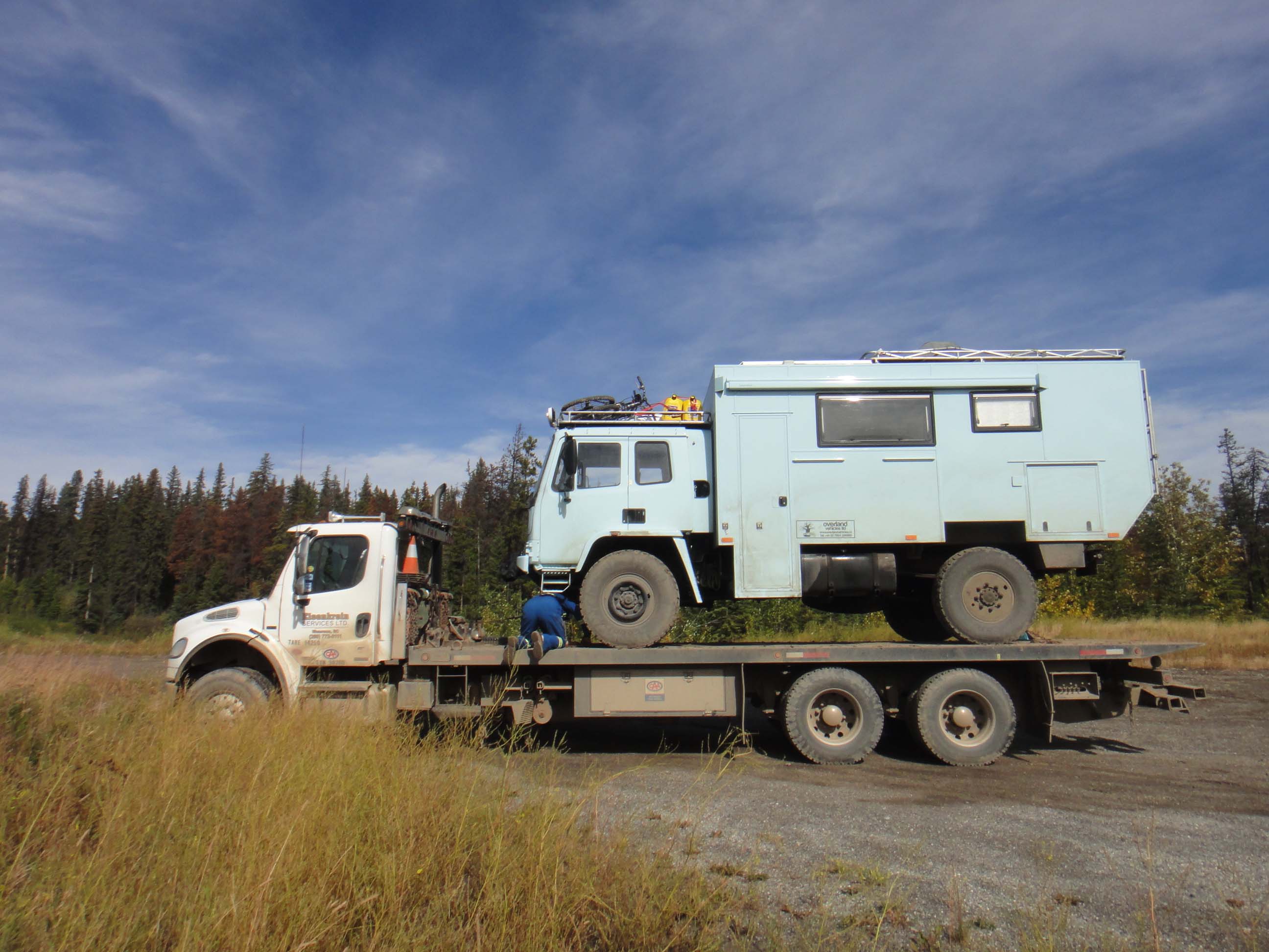 It wasn’t so bad this time – we thumbed a ride 5km down the road to a place called Wonowon (101 miles on the highway – cool name huh!).  Here we arranged another tow to take us to Fort St.John (a bigger town). This is where the nightmare started. Nowhere in town would take us – a couple of places quoting at least 2 weeks until they could see us.  It’s an oil and gas town and the garages are constantly busy… if you’re a mechanic this is the place to be, they’ve been advertising for over a month and only had 1 applicant and the money for a mechanic out here is good! You don’t make the big bucks working in an office in these towns.