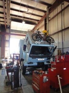 Here we managed to find Total Truck and Repair. These guys have been brilliant. The work that they did took three days but they let us camp out in our camper in their workshop. Not the prettiest campsite we’ve been in but better than having to fork out for a motel. We made the best of it and even setup our table in their yard for alfresco dining.