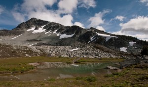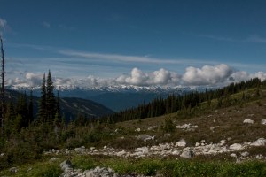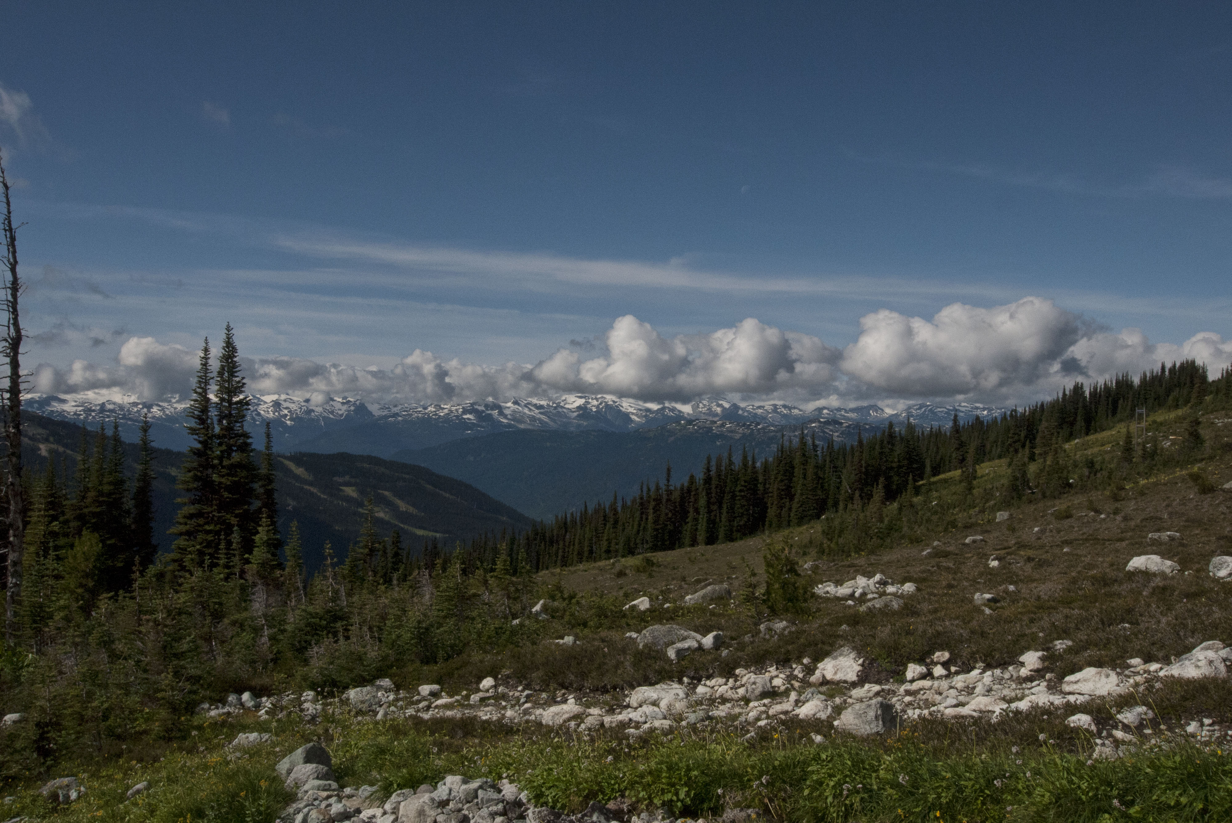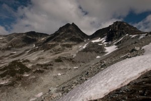 The next day we wanted to get up in the Alpine for some hiking. We got up relatively early and headed out and up the Whistler Village lift to the top of the Whistler Mountain. From there we went across the Peak2Peak lift – they get terribly excited about it but it was just another Gondola that happens to go between two mountains – not so different to others like the one that links Les Arcs and La Plagne. Anyway we got to Blackcomb mountain where there was a 10k long hiking trail that was right up in the Alpine and very pretty.