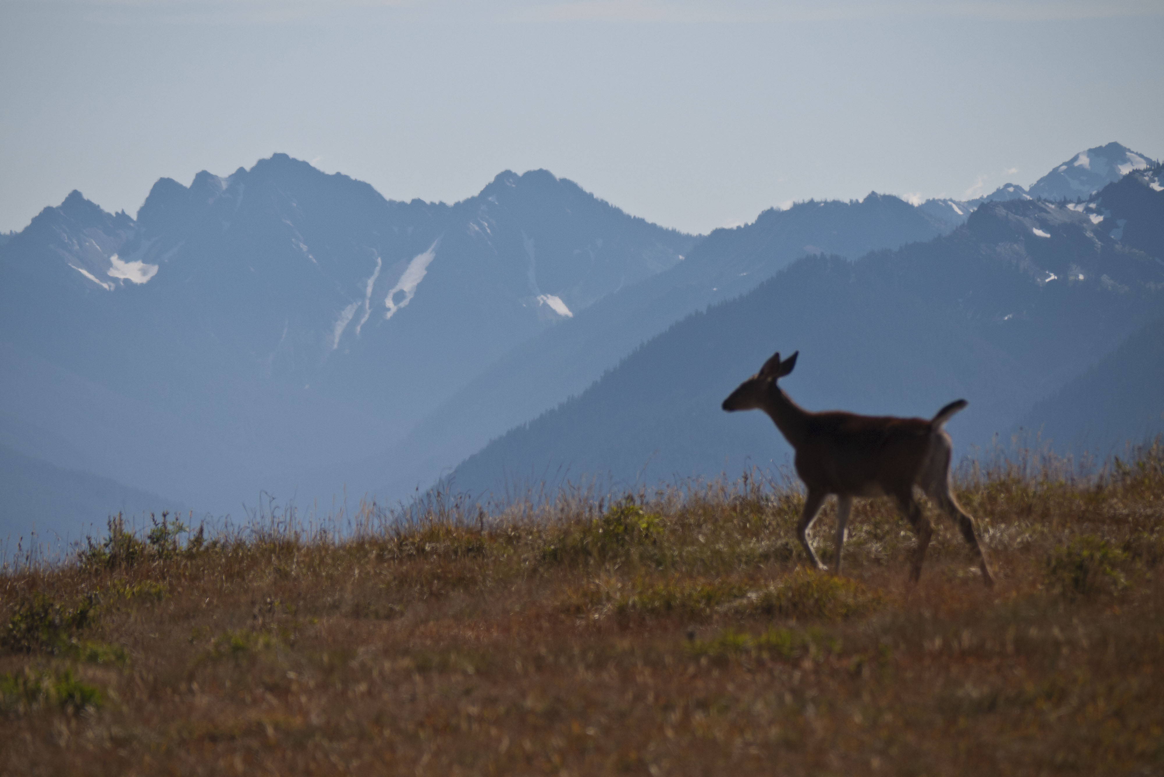 We also saw a number of remarkably unafraid deer on our hike. We spent the day up in the Hurricane ridge area before descending to Hurricane Ridge road and finding a turnout to spend the night.