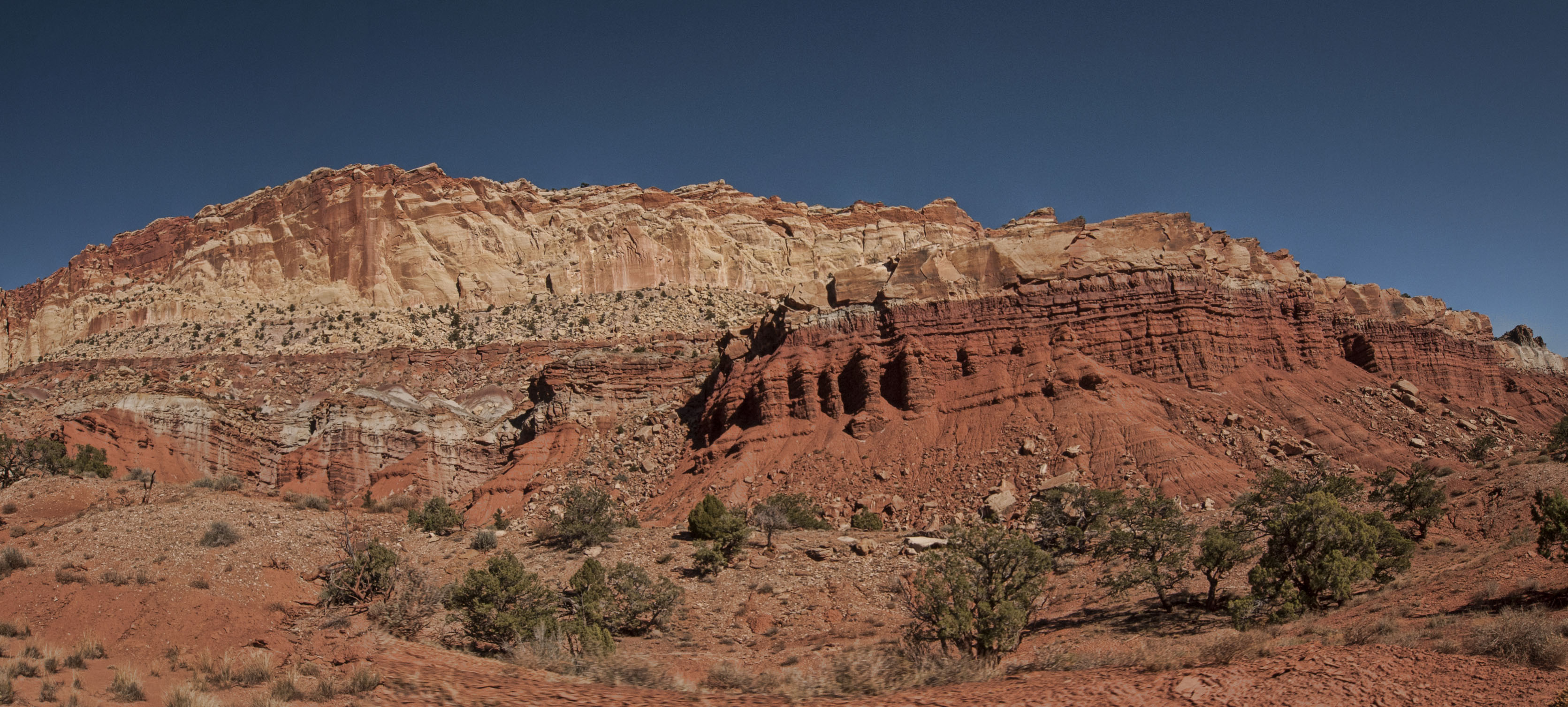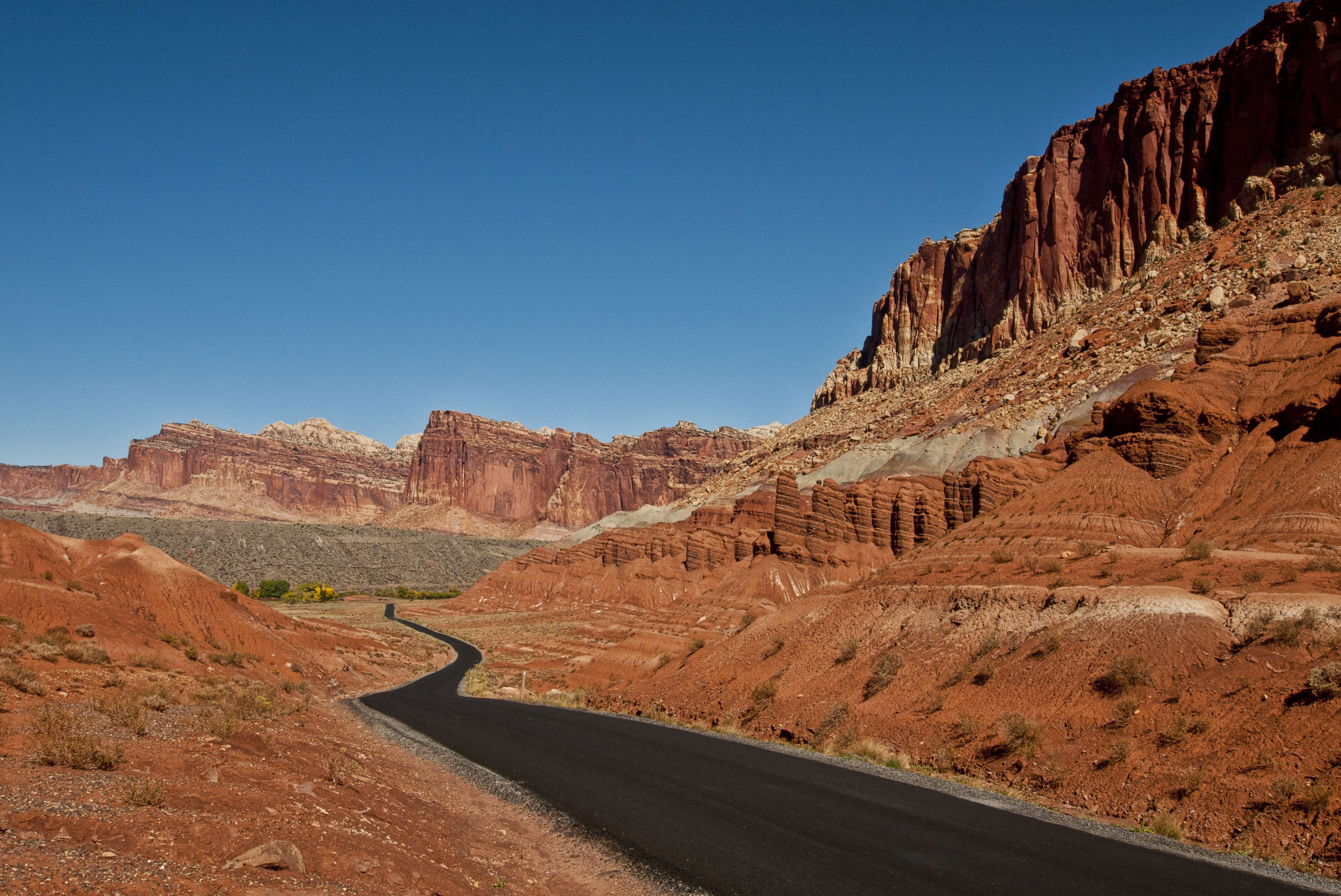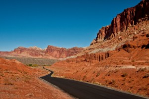From Goblin Valley we drove down a slight detour to Capitol Reef National Park. The road in was very pretty down a forested valley but on getting there we were not enormously impressed with the Park so we decided to drive the 18 mile scenic drive and then head off.
