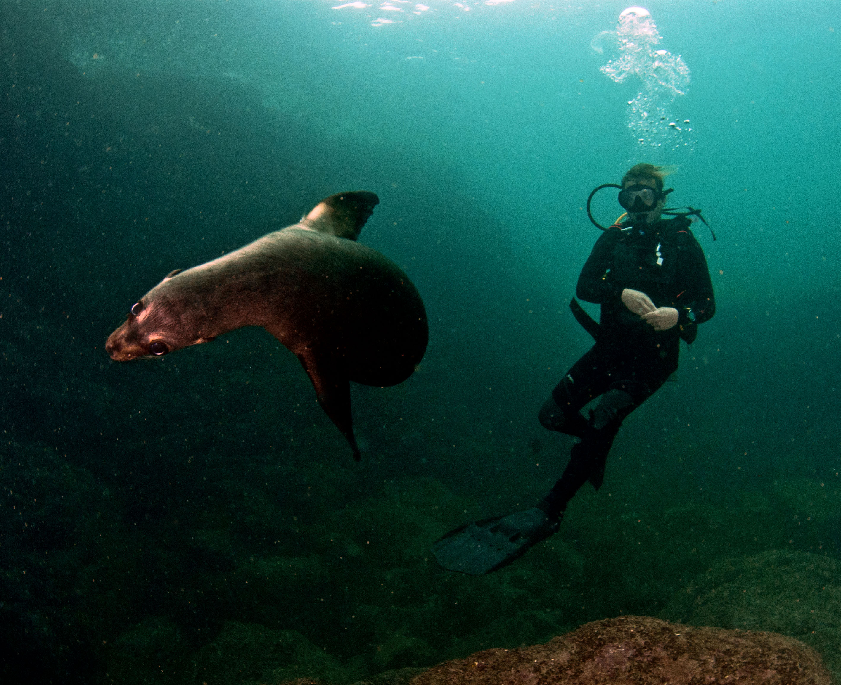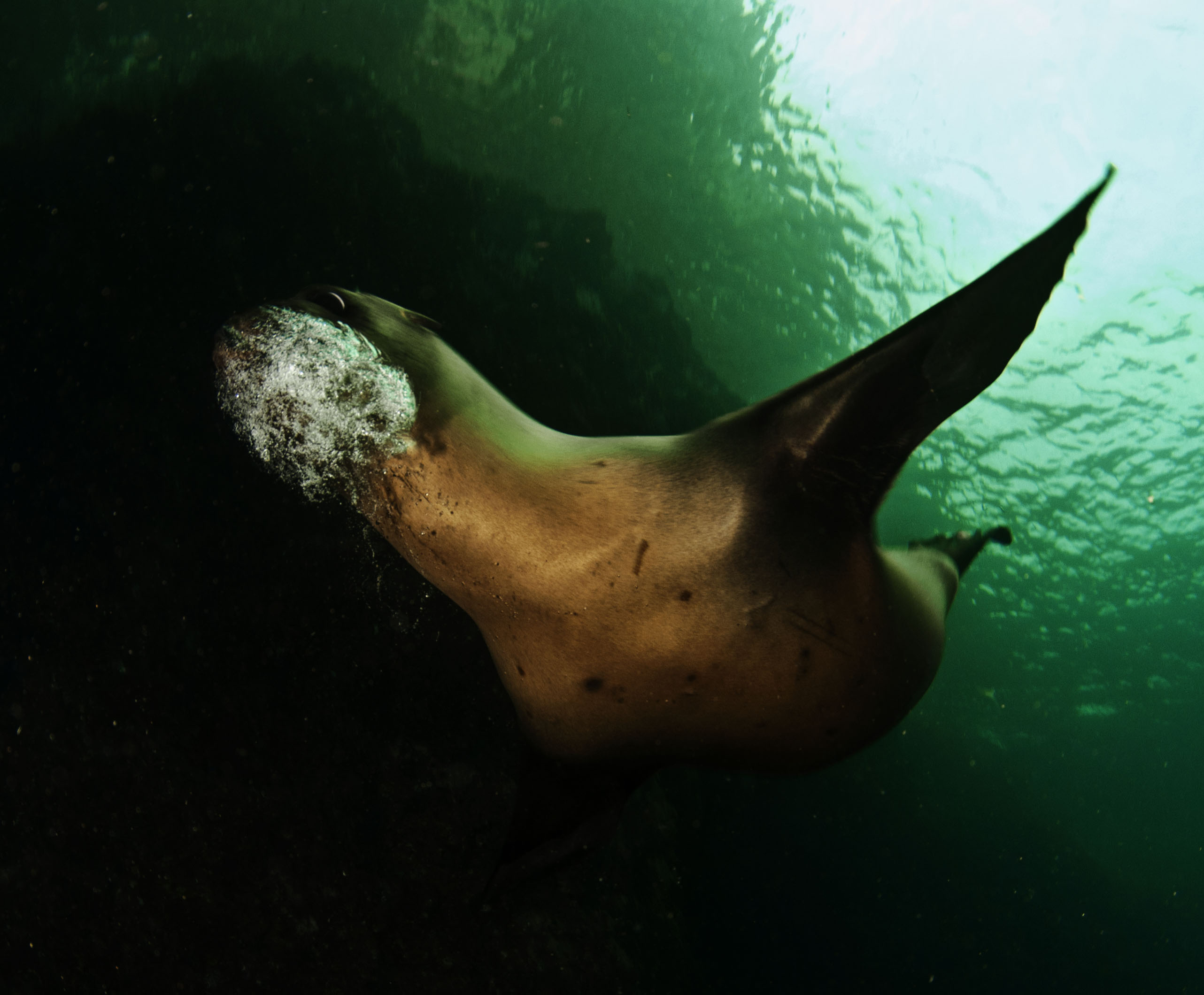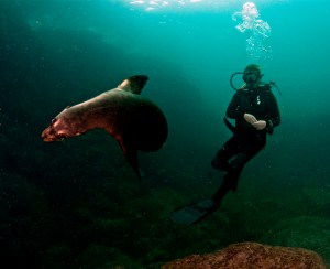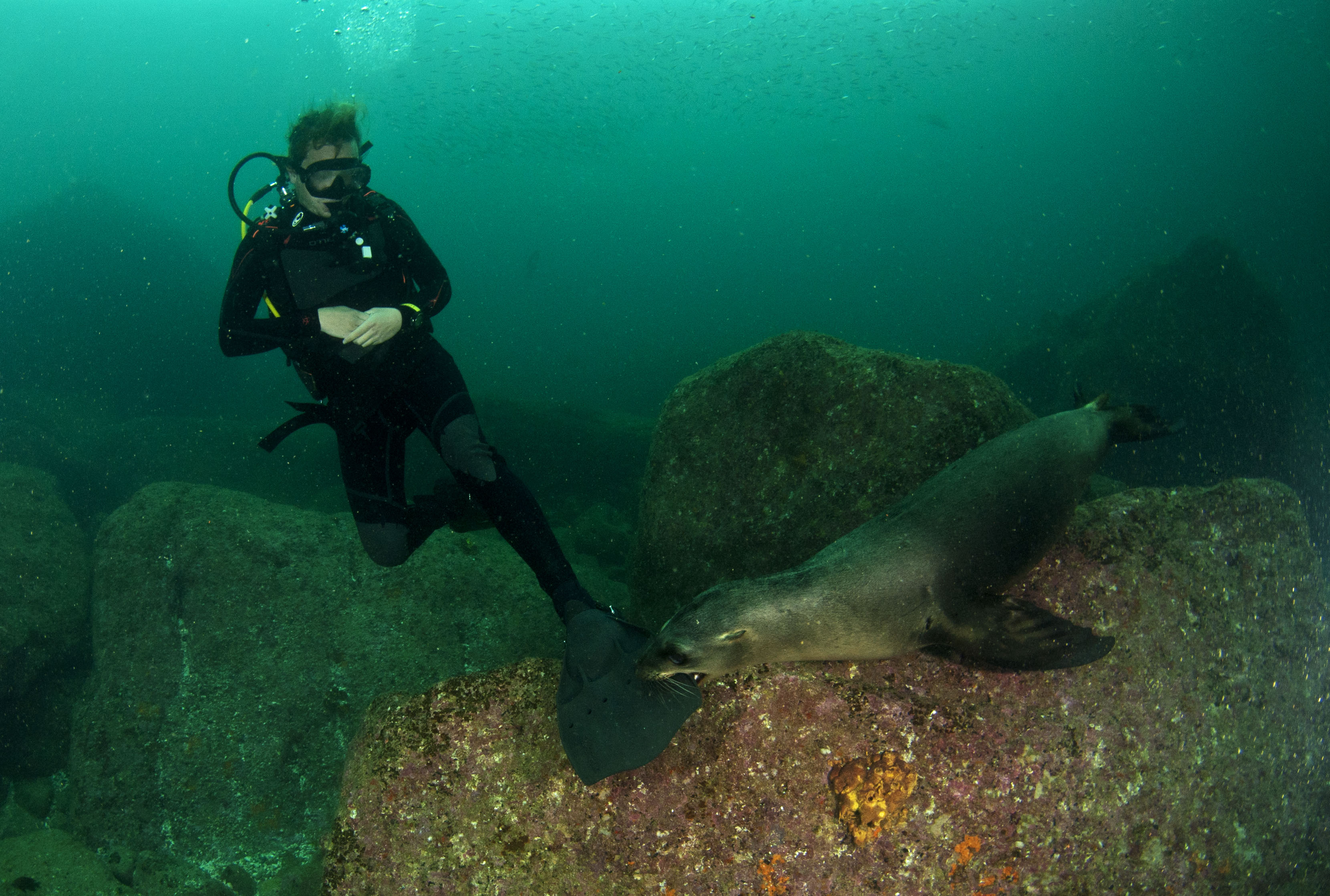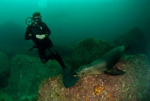 At one stage of the dive a big female sea lion and youngster swam by straight over my shoulder which gave me a bit of a start. The dive wasn’t that great until the end when we got to spend about 25 minutes playing with some pups who would fly around and around often waiting until your back was turned before sneaking up on you. One of the other guys on the dive got his fins nibbled by one of the pups a few times. I ended up being the last out of the water having spent almost 80 minutes on the dive.