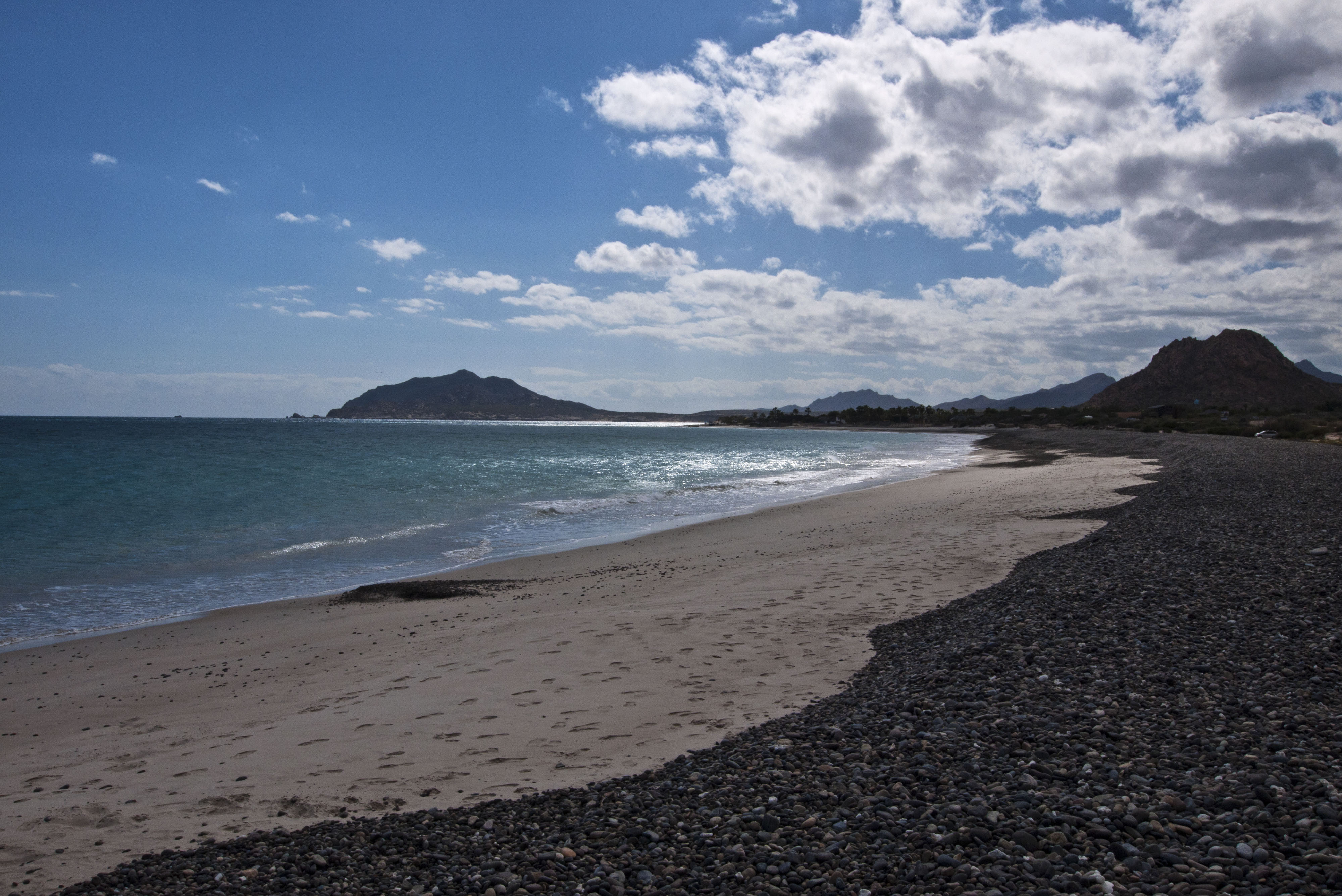 From Los Barriles we drove off the main highway and down a dirt road to Cabo Pulmo. This is the site of one the only coral reefs in the Western Americas. Unfortunately we checked with the local dive op and they told us that the North wind was blowing and they couldn’t get out. We went to the beach but the wind was indeed blowing and we decided not to stay.