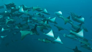 The next morning we drove to the dive shop and parked in a pay car park right outside the shop. We loaded up onto their boat for the 10 minute journey to the dive site. The first dive was on Pelican Rock – the harbour side of Playa Amor. This was a fairly average dive with the only real highlight being a seahorse that I’d not seen before with a snub nose, the visibility was variable because of a dredge working in the harbour. The second dive was much better and was on the point where the Sea of Cortez and Pacific meet. There is an underwater pinnacle here which we dove around – despite some heavy surge and interesting currents. The highlight of this dive was a school of cow nosed rays which swam past us. Unfortunately they bolted when the strobe from my camera fired !