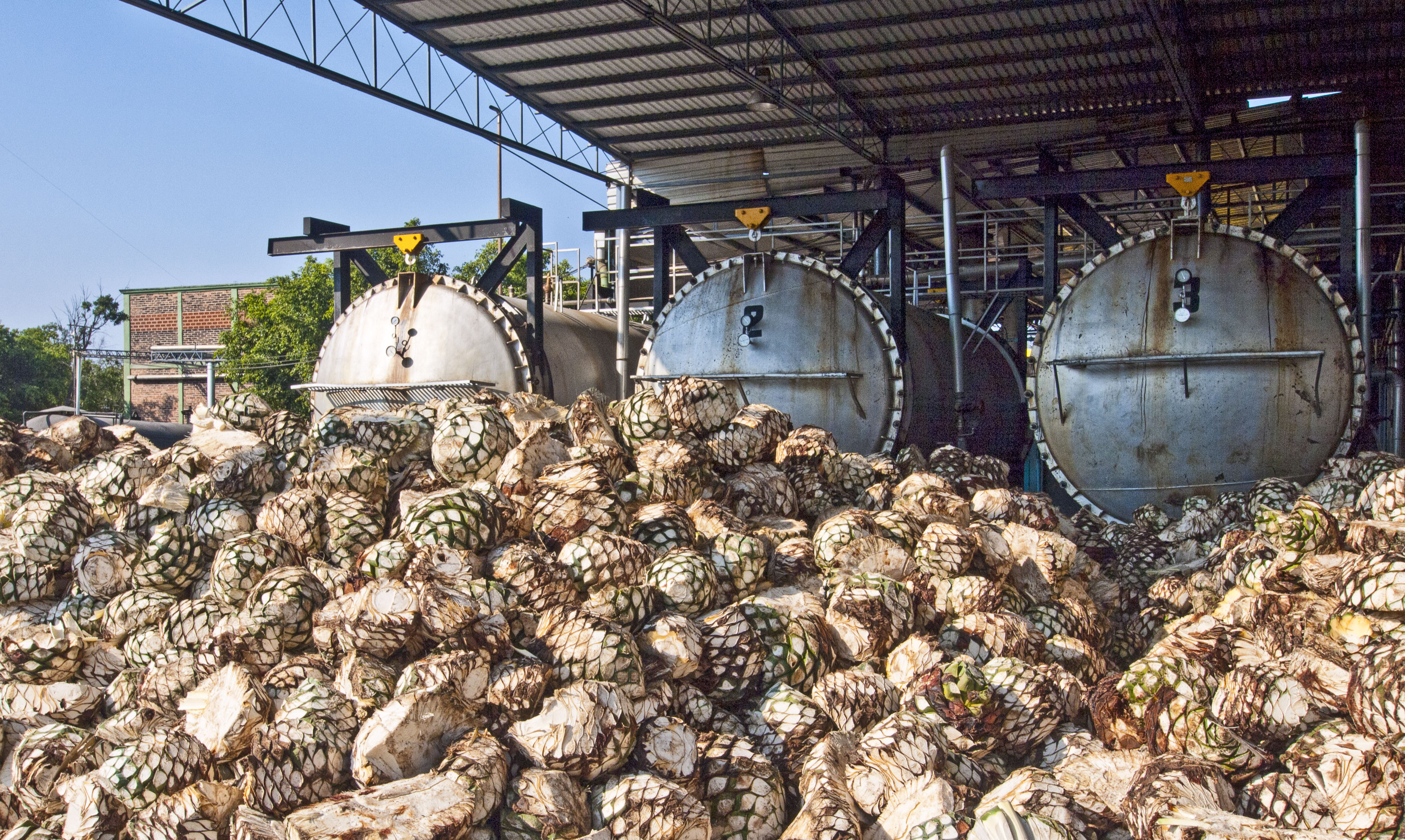 1) The Blue Agave pineapples are cooked in an oven for 24 hours to produce honey like substance and then the pulp is pressed to extract the juice. The Agave honey is used for a variety of things but the juice is then transferred to the next process.