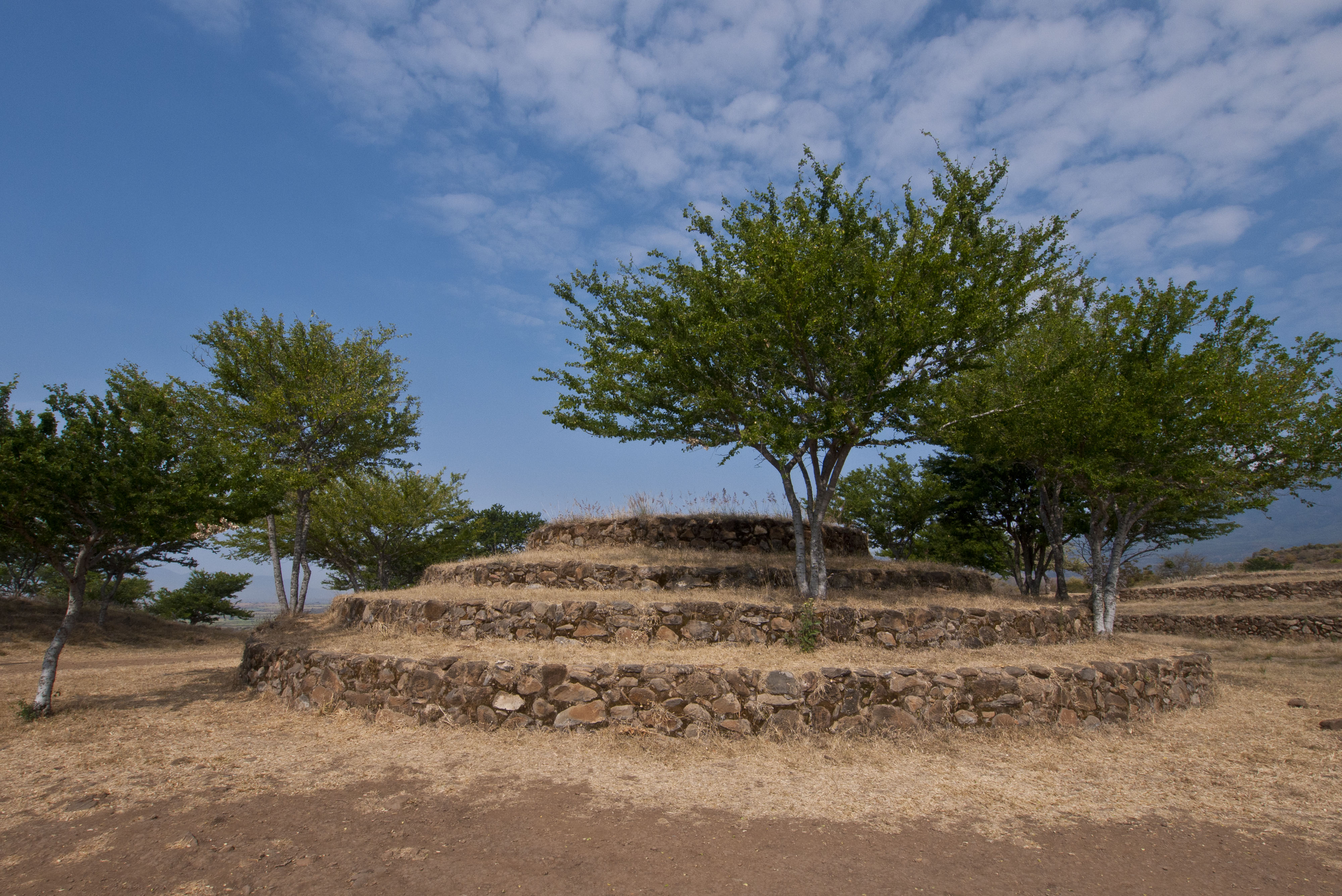 Not far down the road from Irzatlan is a small town called Teuchitlan where there are some ruins of a city left by a civilization that existed around 0 – 300 AD. What is interesting about these particular ruins is that they are circular when most of the ancient ruins in Mexico are square shaped. The ruined city is called Guachimontones. There is quite a lot of tourist development going on here with the building of a big new visitor centre/museum which hasn’t opened yet.