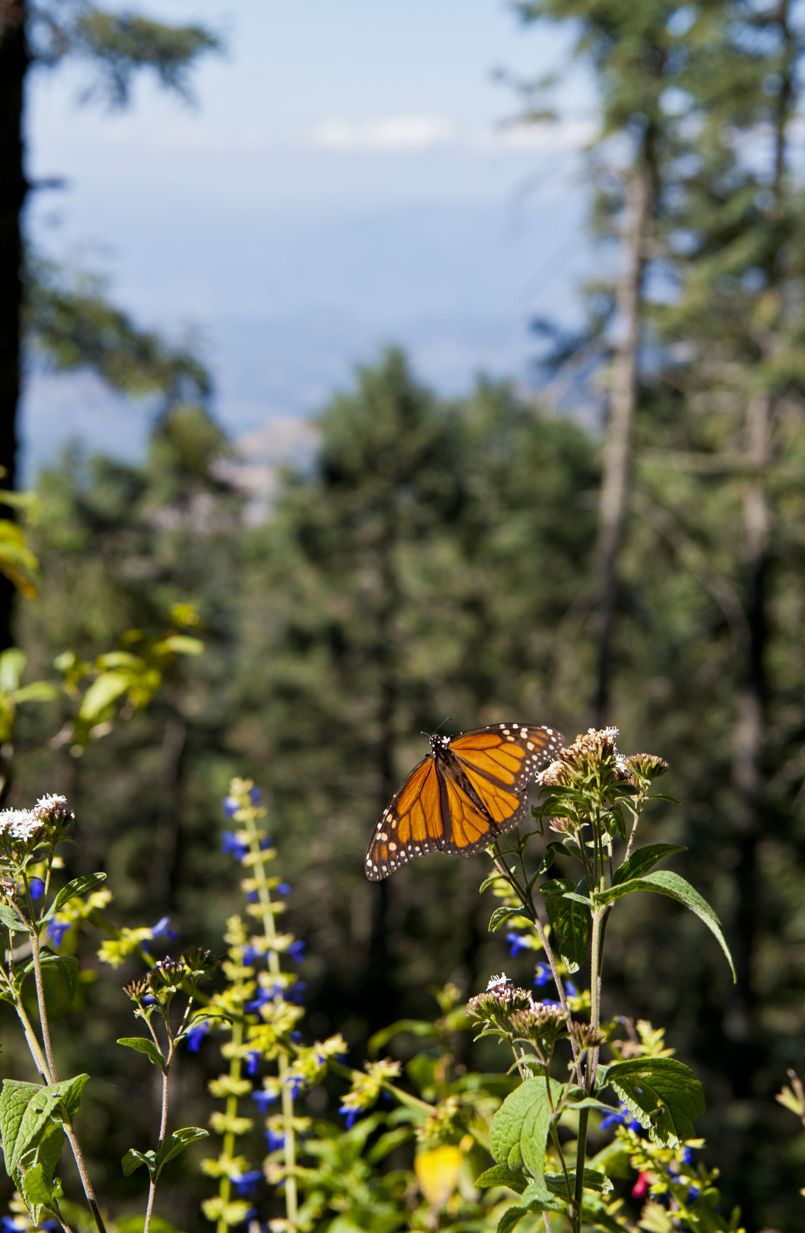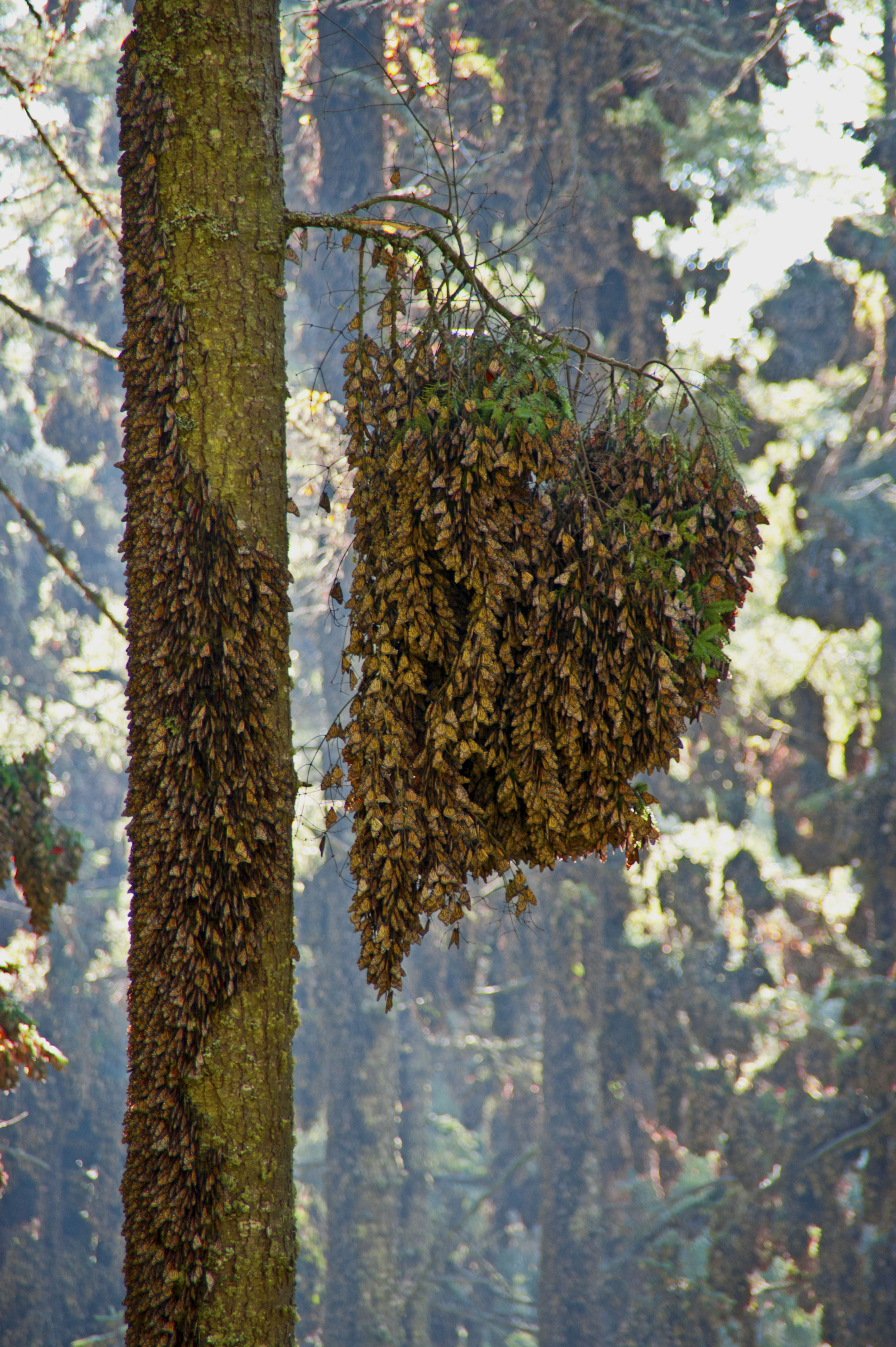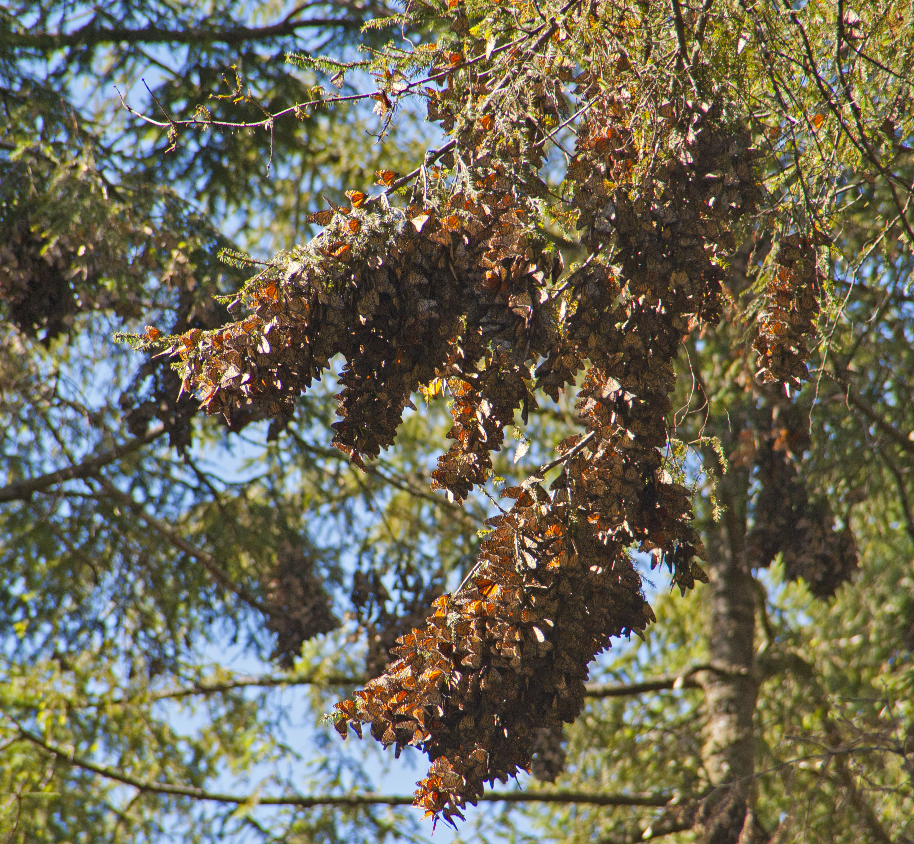 The life cycle of the Monarch butterfly is amazing. These butterflies spend their summers in the Great Lakes region of North America but the whole species migrates South to highland Mexico in the winter. They begin to arrive in mid-November and leave again in March. The butterflies usually only have a lifespan of 3-5 weeks but during this migration they suspend their breeding cycle and the same butterflies travel all the way South and then breed before their offspring head Northwards. It is a distance of around 4500 miles.