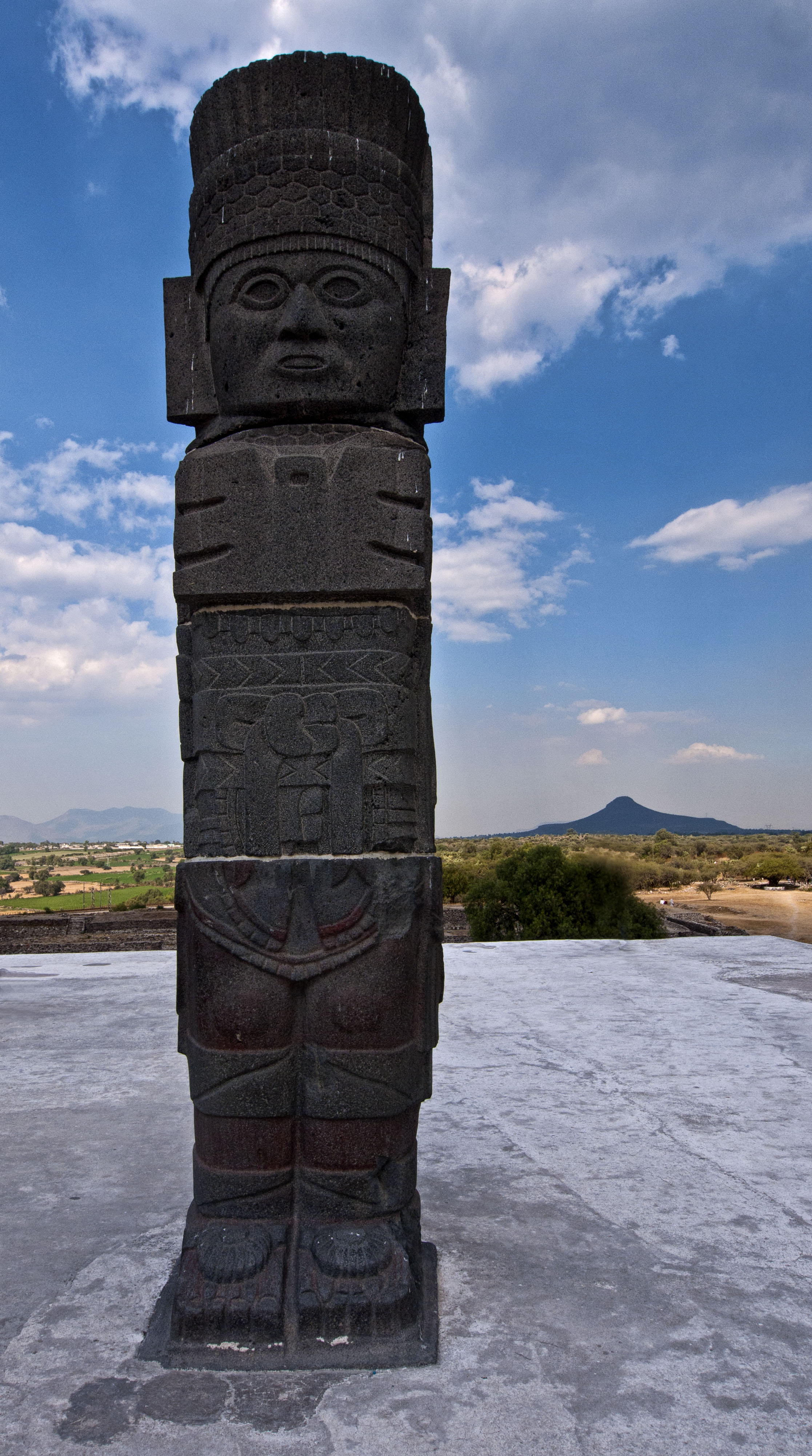 On the way to Teotihuacan we stopped off at an ancient city called Tula. This was the city that took control of this central Mexican region after the fall of Teotihuacan. There’s not that much of the city excavated. However there is a central pyramid which is topped by a number of carved columns called Stelae.