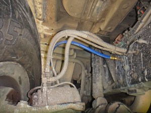 The picture shows the new air line (Blue) that we had put on in Merida. It’s the connection at the frame side that blew out.