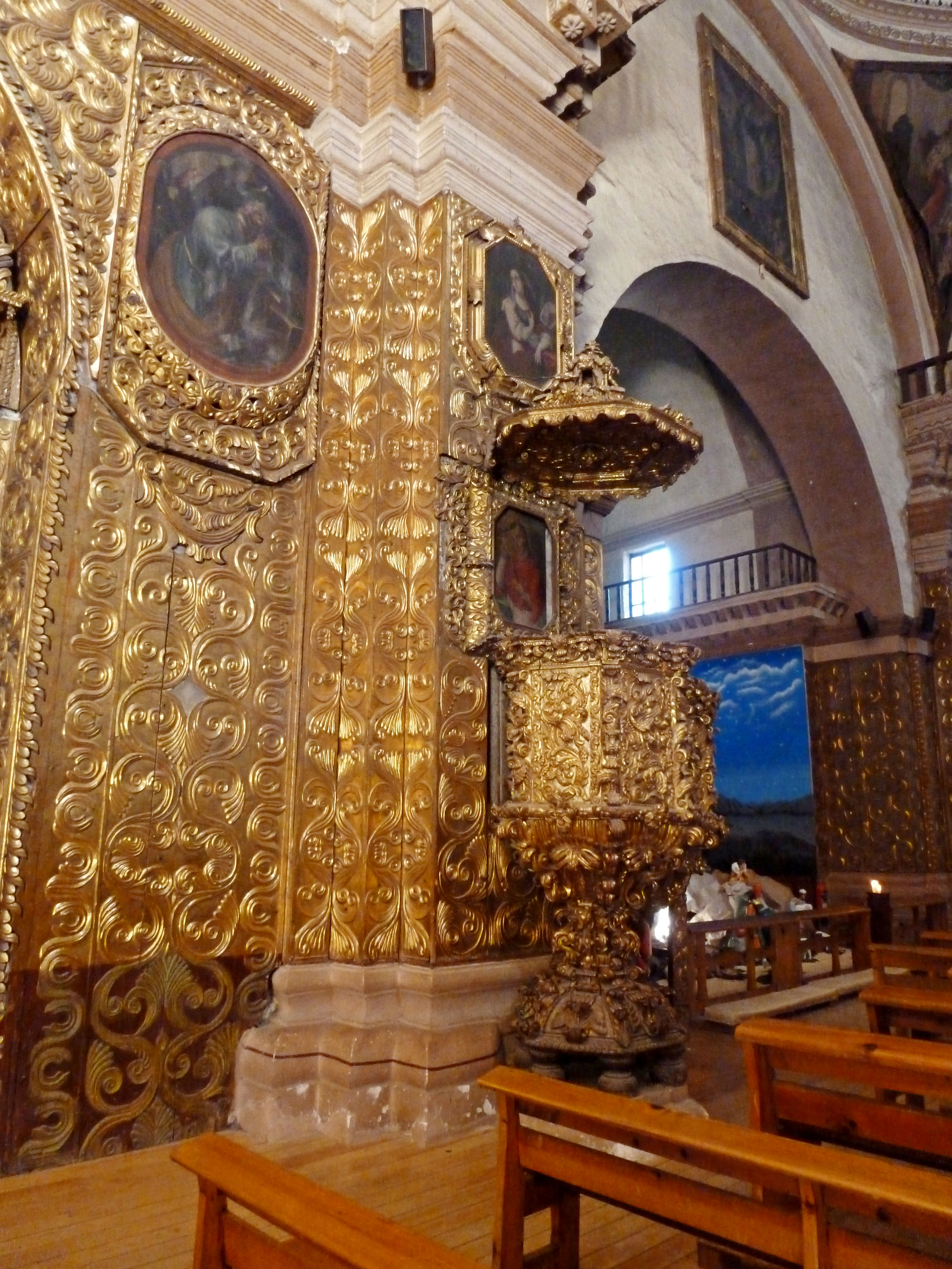 There is one old church that stands out (the Templo de Santo Domingo Guzman). The inside is incredibly ornate and covered in gold. In the dim light inside it looks like the whole of the church is made from solid gold.