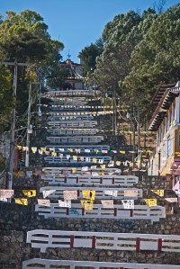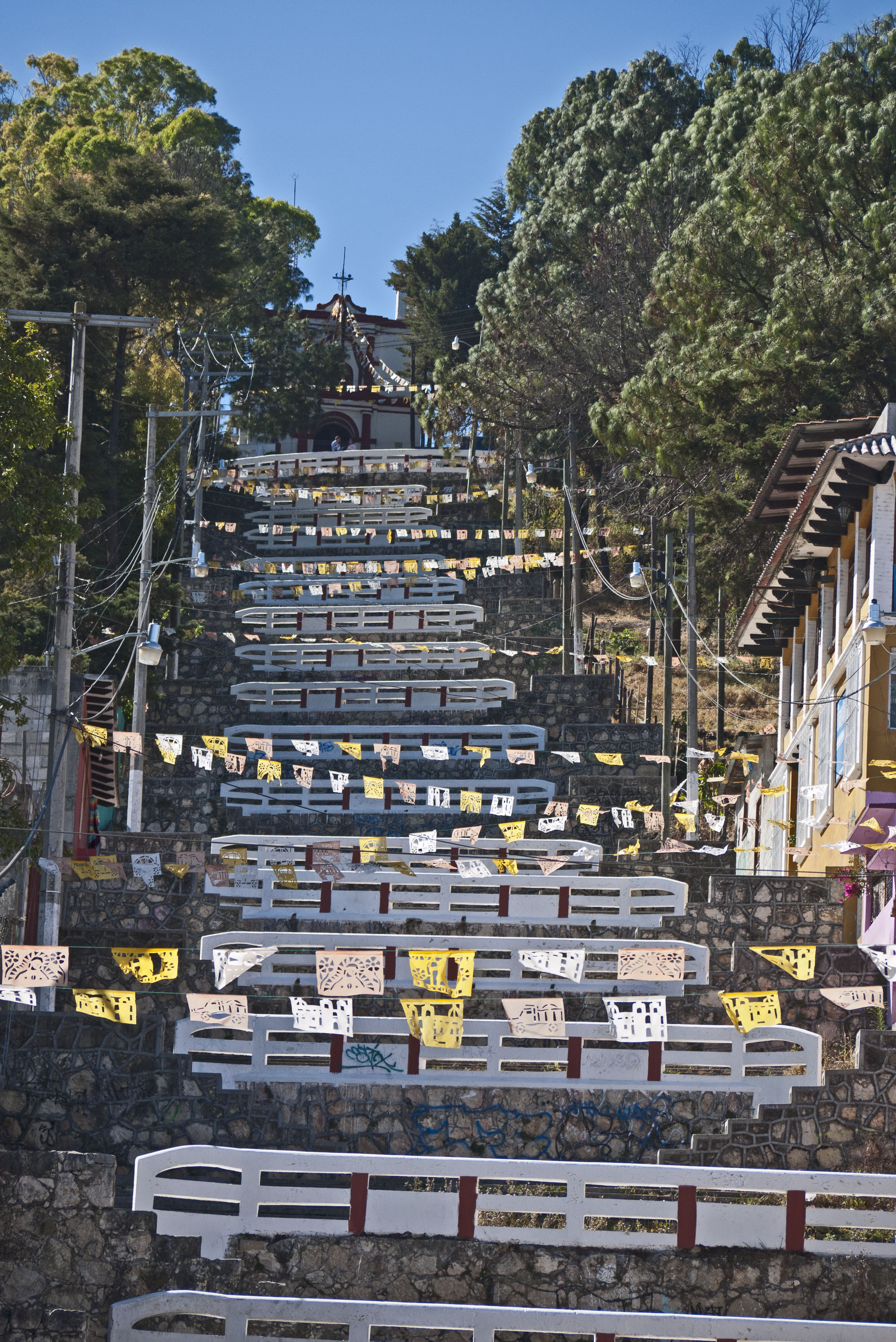 There is one church that stands on hill to one side of the town and is accessed by a steep flight of stairs. We climbed the stairs for the view only to realise at the top that the church is ringed by trees and you can’t see the town at all !
