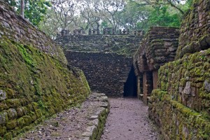 A short walk down a jungle path however and you come to a small pyramid and some dark doors. This is the entrance to the Labyrinth which is a building with a number of passages. You climb up stairs in the dark (we’d though to bring a torch which was very helpful) to emerge from a temple into the city proper.