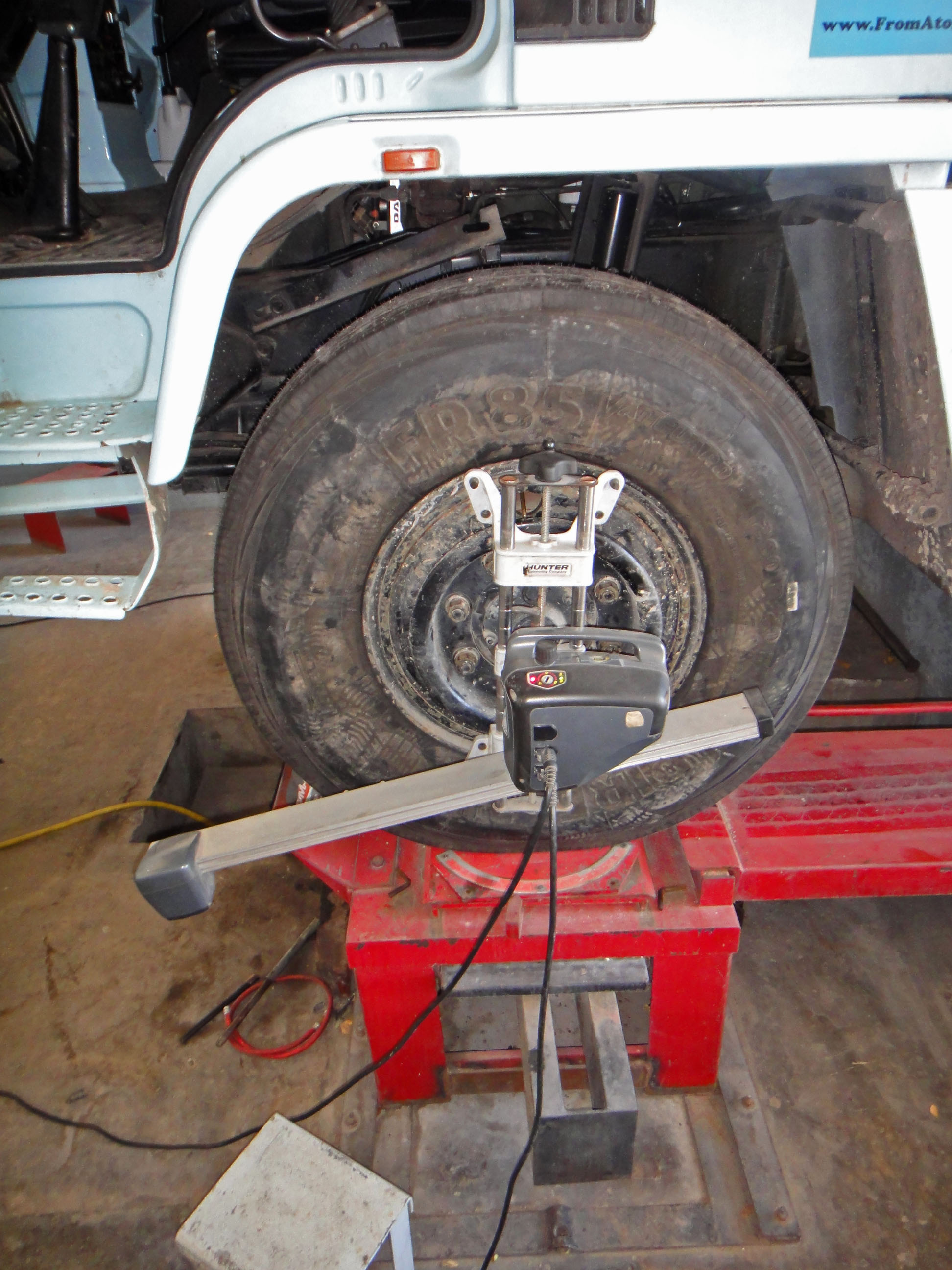 On Monday morning we went to Radial Llantas to have our new tyres fitted, balanced and the truck alignment done. The alignment on the truck was way out and was causing tyre wear so needed fixing. These guys were really good and had a fancy electronic system for doing the alignment. They were set up to do big trucks so we weren’t a problem at all.