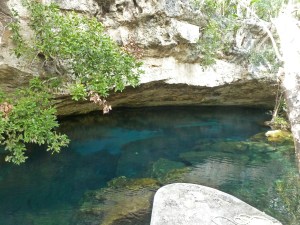The instructor, Mario, a Spaniard who has lived in Mexico for the last 20 years drove us the 10 minutes to the first cenote – Chicken-Ha. We scoped out the entry which was fairly straightforward and involved jumping in off rock (not a giant stride but jumping in and landing on your back).