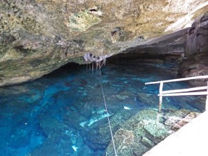 Once in we headed down and toured around in the cavern. There were several dark passages leading off from the main room (but these are the preserve of cave divers). This cenote does not have lots of decoration in the form of stalactites and stalagmites but watching the light come in from the surface and the various haloclines is fascinating.
