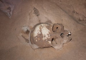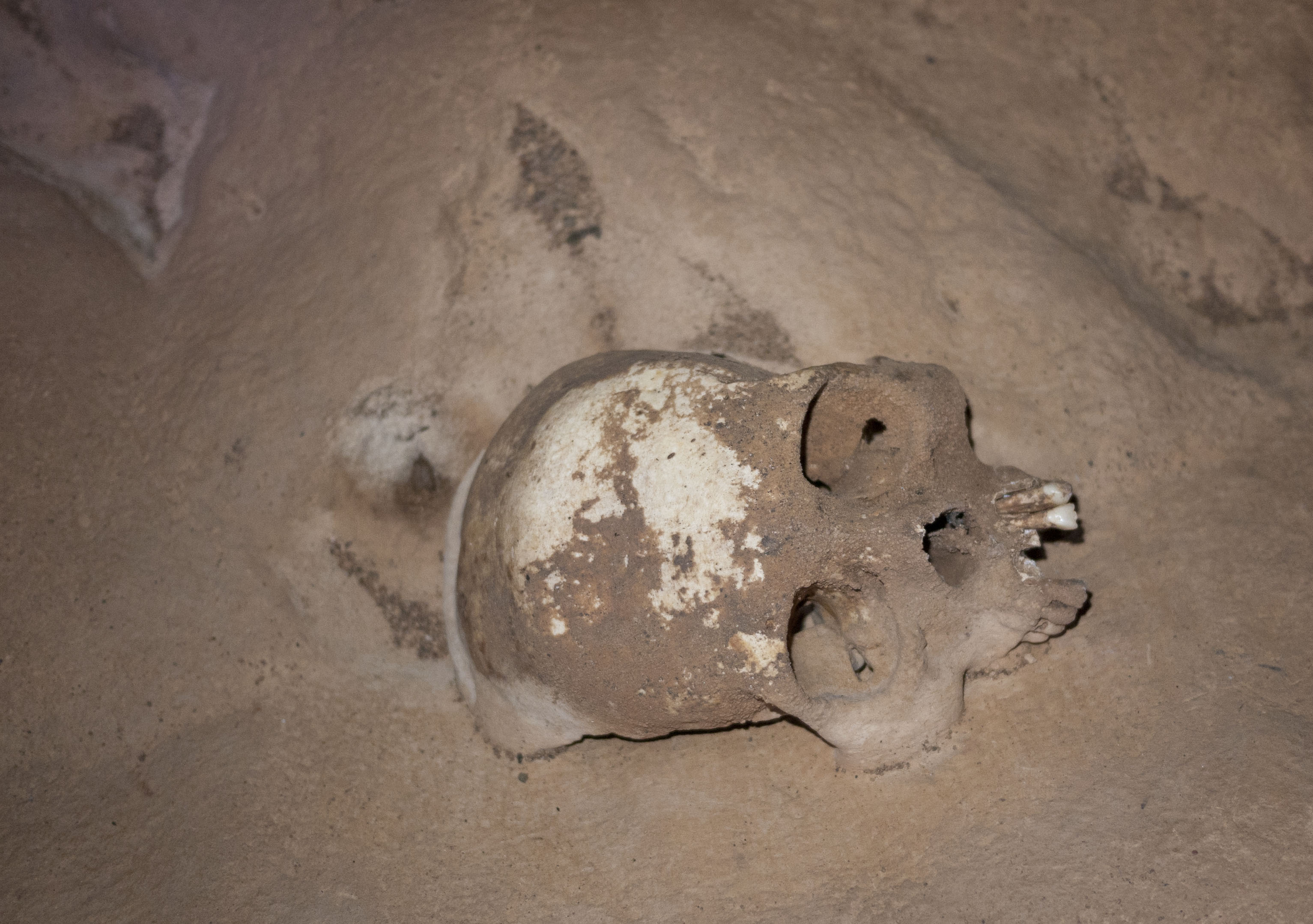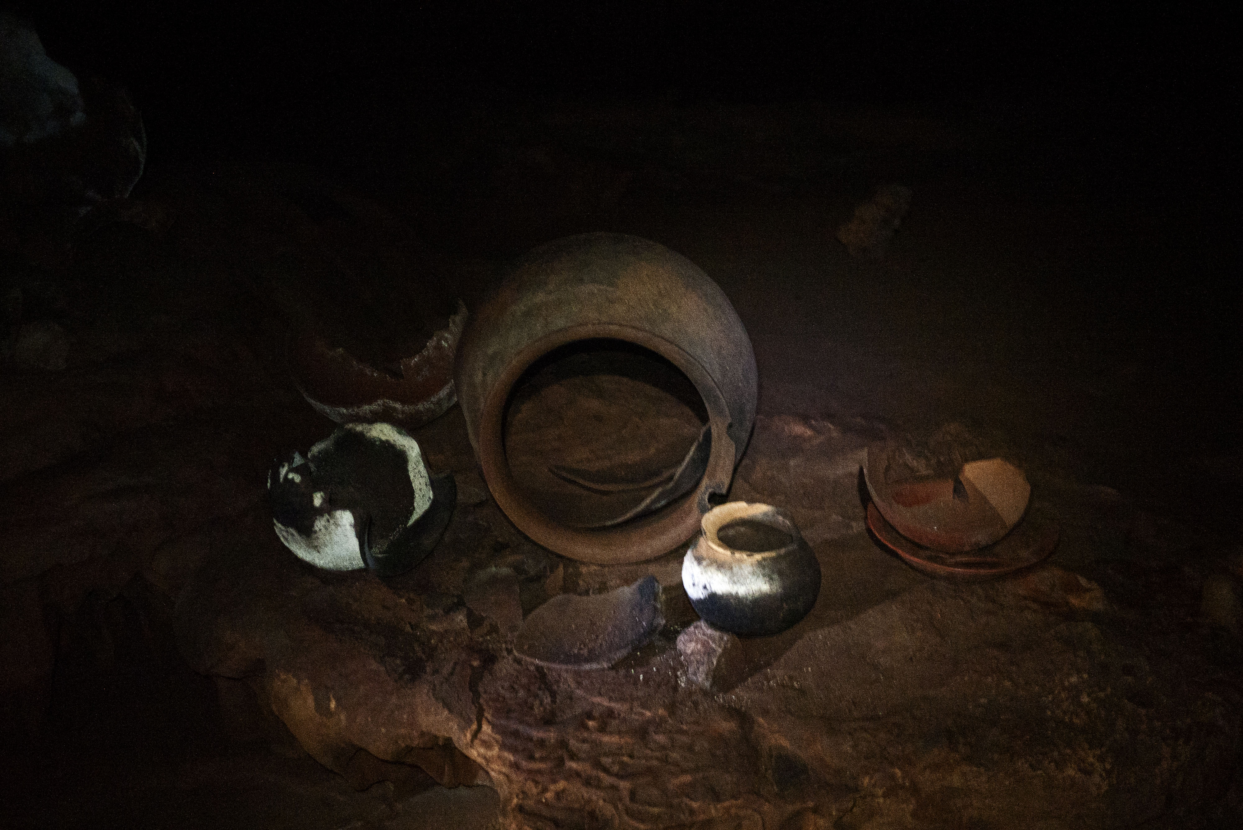 This dry cave was used by the Mayans as a burial chamber and as a site for some of their religious ceremonies. Inside the cave 13 skeletons have been found often in pairs where an older person is paired with a younger one who would be their helper in the afterlife. Also there are large quantities of Mayan pottery which would have been used to hold offerings to the gods.