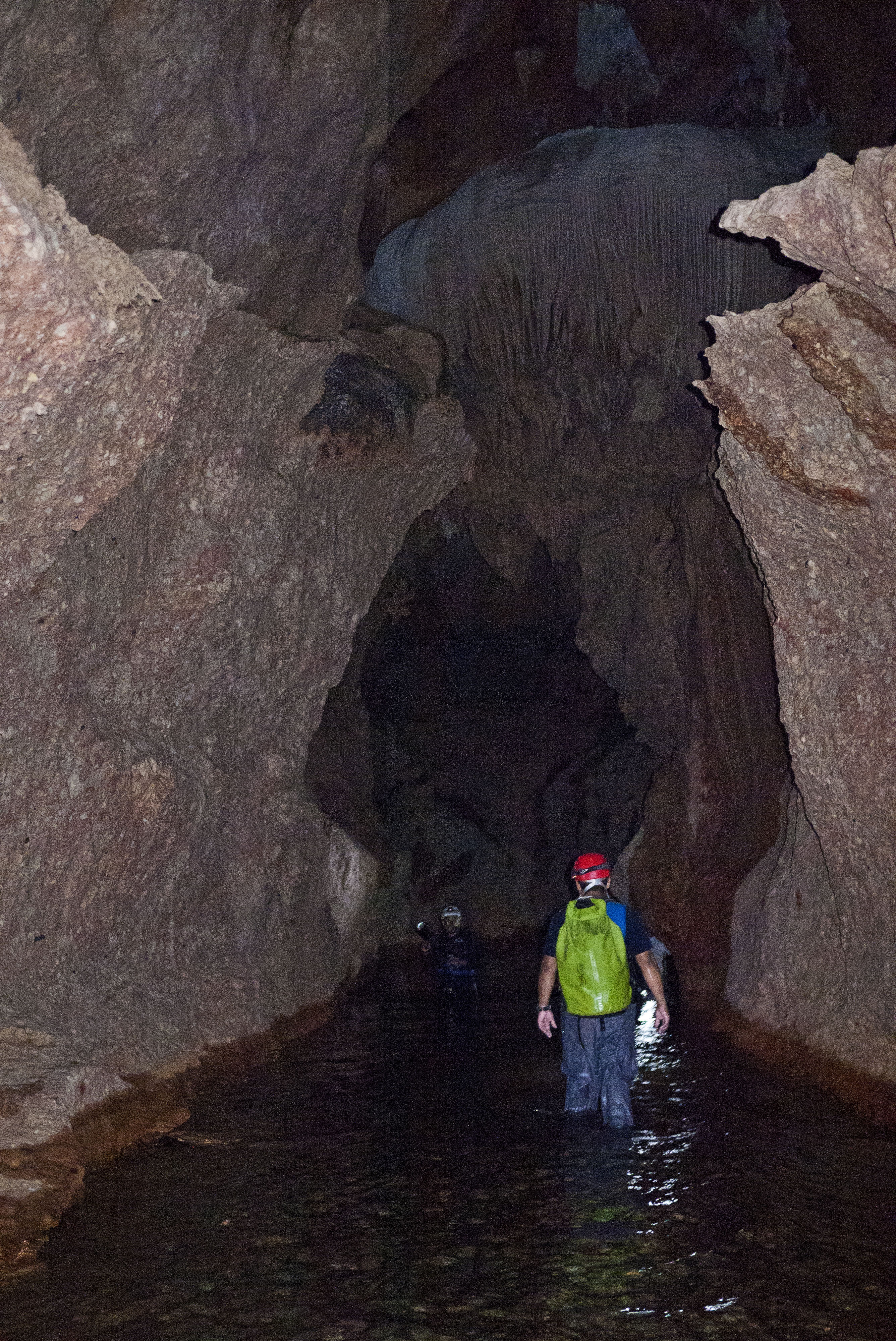 The cave itself is very big with the ceiling often 20m or more high. The river running through it varies in depth and in some places you have to swim short distances and in others the water is only ankle deep.