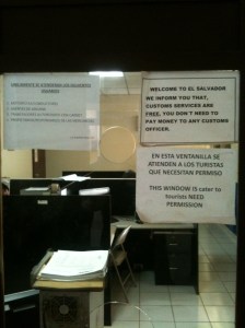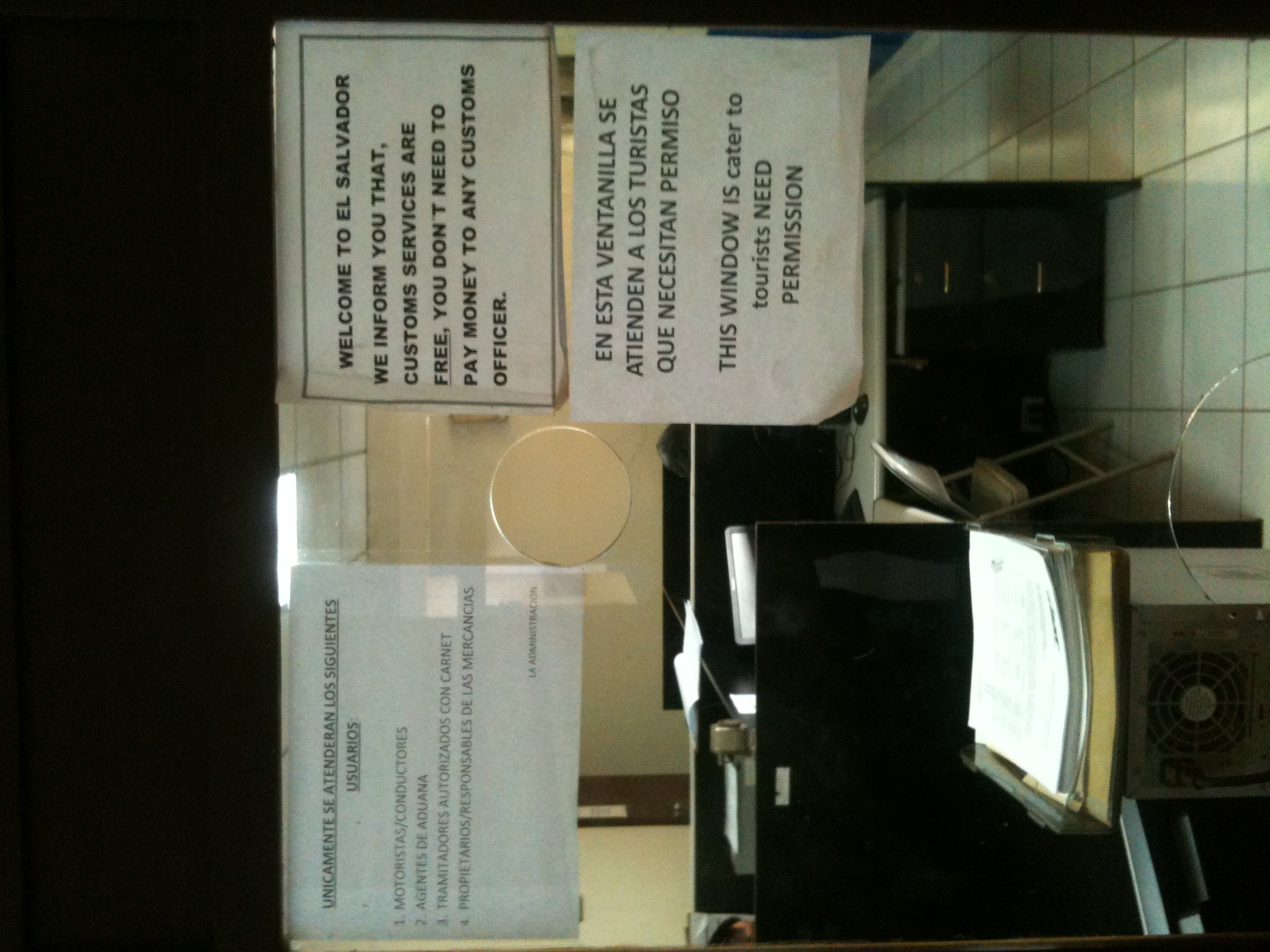This guy checked everything the first guy had done while chatting to me in quite good English – although he wanted to talk about “my prime minister – Margaret Thatcher”! When he was done he handed me the Temporary import form for El Salvador.