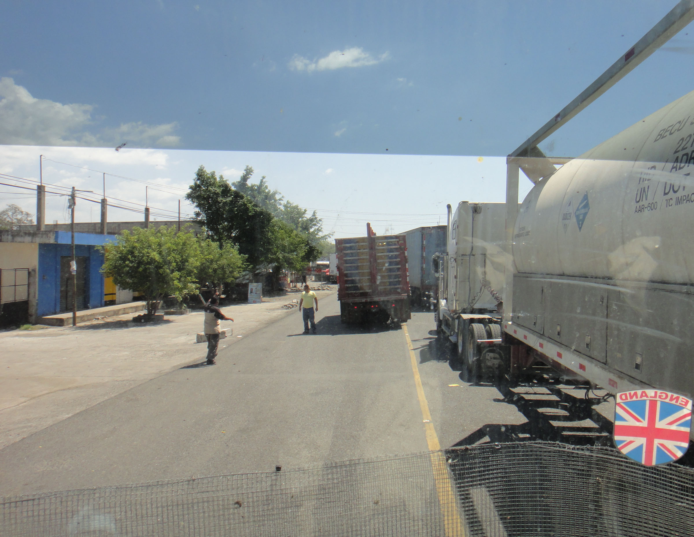 Eventually we managed to enter the line about 5 trucks back from the border buildings. While playing this hopscotch we had a tramitador jump on the side of the truck and tell us that his help was necessary to survive the border process. We initially told him we didn’t need any help but fortunately he ignored us and proceeded to help us anyway. We agreed a fee of USD5 for his help at the Guatemalan border.