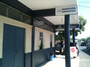 The first of these is to take your passports to the immigration office. It only needs one person to do both passports. This is where our Tramitador started earning his money. There was a long queue at the exit side of immigration so he took me to the entry side and got our passports stamped there.