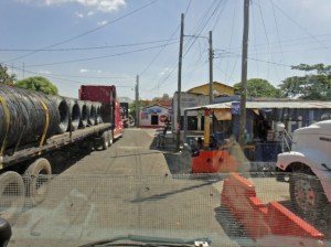 When this guy was done we were nearly there. Just needed one copy of Temporary Import Permit and then we were good to go. This is when our tramitador tried to stiff us by offering to bribe the guard at the border gate to let us through in front of the trucks – he wanted USD20 for the privilege. We declined and drove to the gate where there were no trucks in the way. We handed the copy of our import form to the guard there and we were finally good to go. However we did have to pay USD5 for a contribution to the upkeep of the roads in El Salvador – we got a receipt though so I think it was legit. There was no requirement for fumigation.