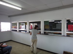 Then you walk back to the main area where there is a little hut opposite immigration. Go to the window here and hand over the copies (an originals) the guy here will give you a form to fill out. Once this is done he staples the copies together and then you have to go back to the aduana building by the loading dock.