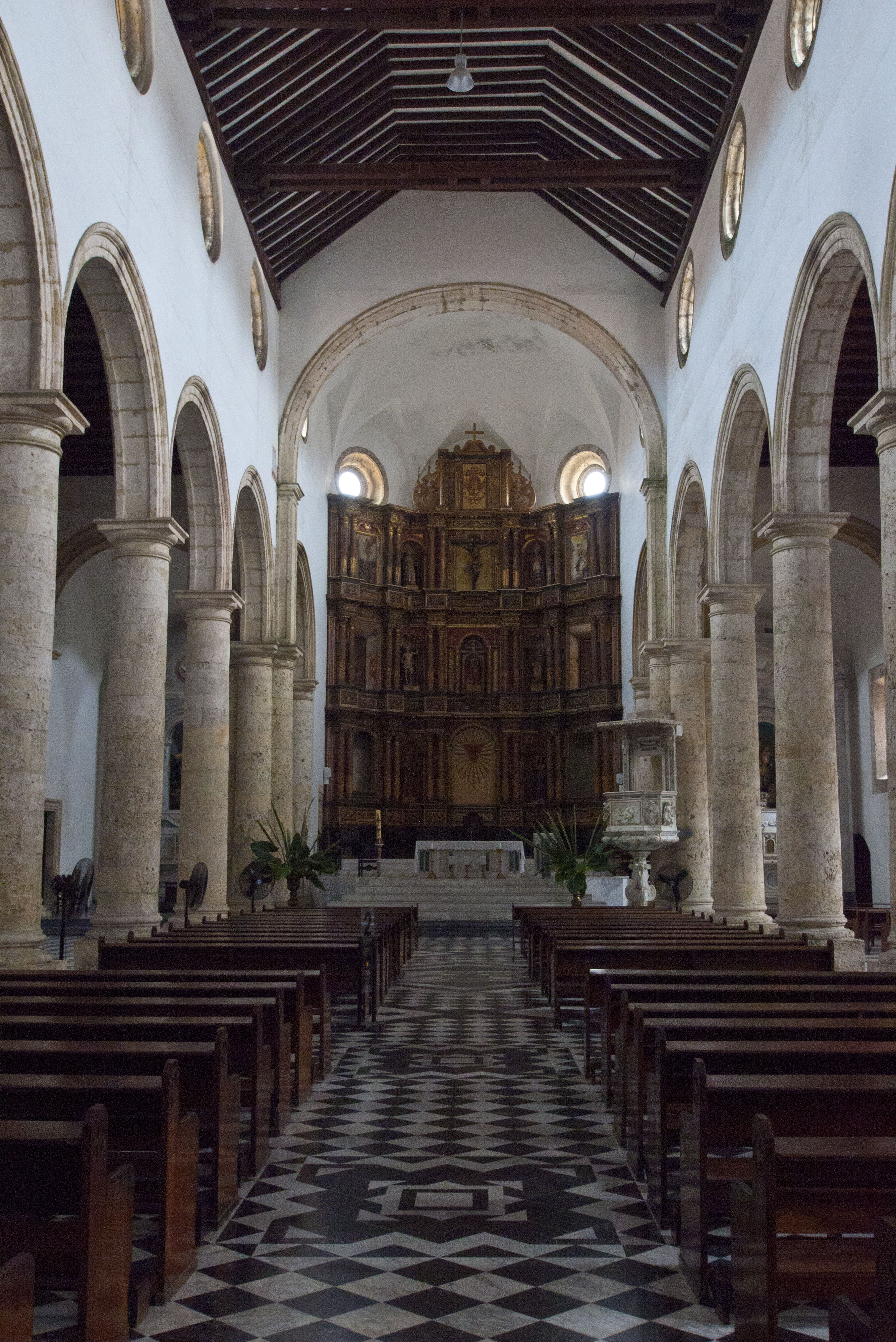 Shortly after seeing Hilary in the Plaza de Bolivar we went into the Cathedral where we did a really good audio tour of the building. The history of Cartagena is amazing – the Cathedral was almost completely destroyed even before it was finished when Francis Drake sacked the town in 1586. In fact pirates sacked the town 5 times in the 16th century leading to Spanish building forts to protect the town and building the walls around the town itself.