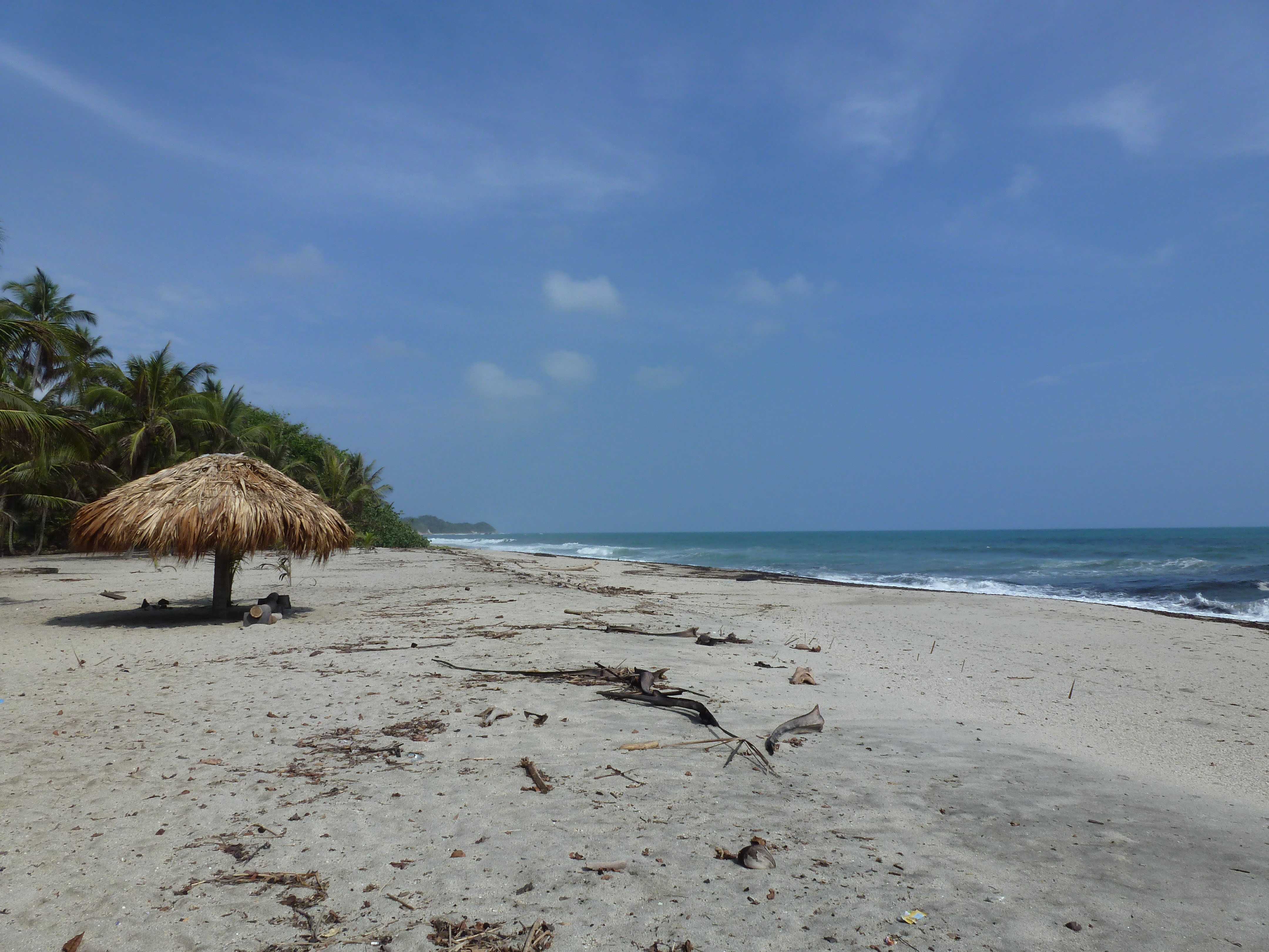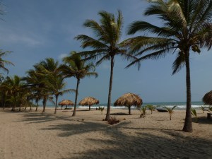 After managing to stock up with food we drove to the beaches to the East of Santa Marta and settled into a place called Casa Grande – right next to Tayrona NP but without the expensive entrance fees. This was a lovely Caribbean Beach – albeit with crashing surf making swimming difficult. The place was practically empty while we were there and we spent a few days relaxing.