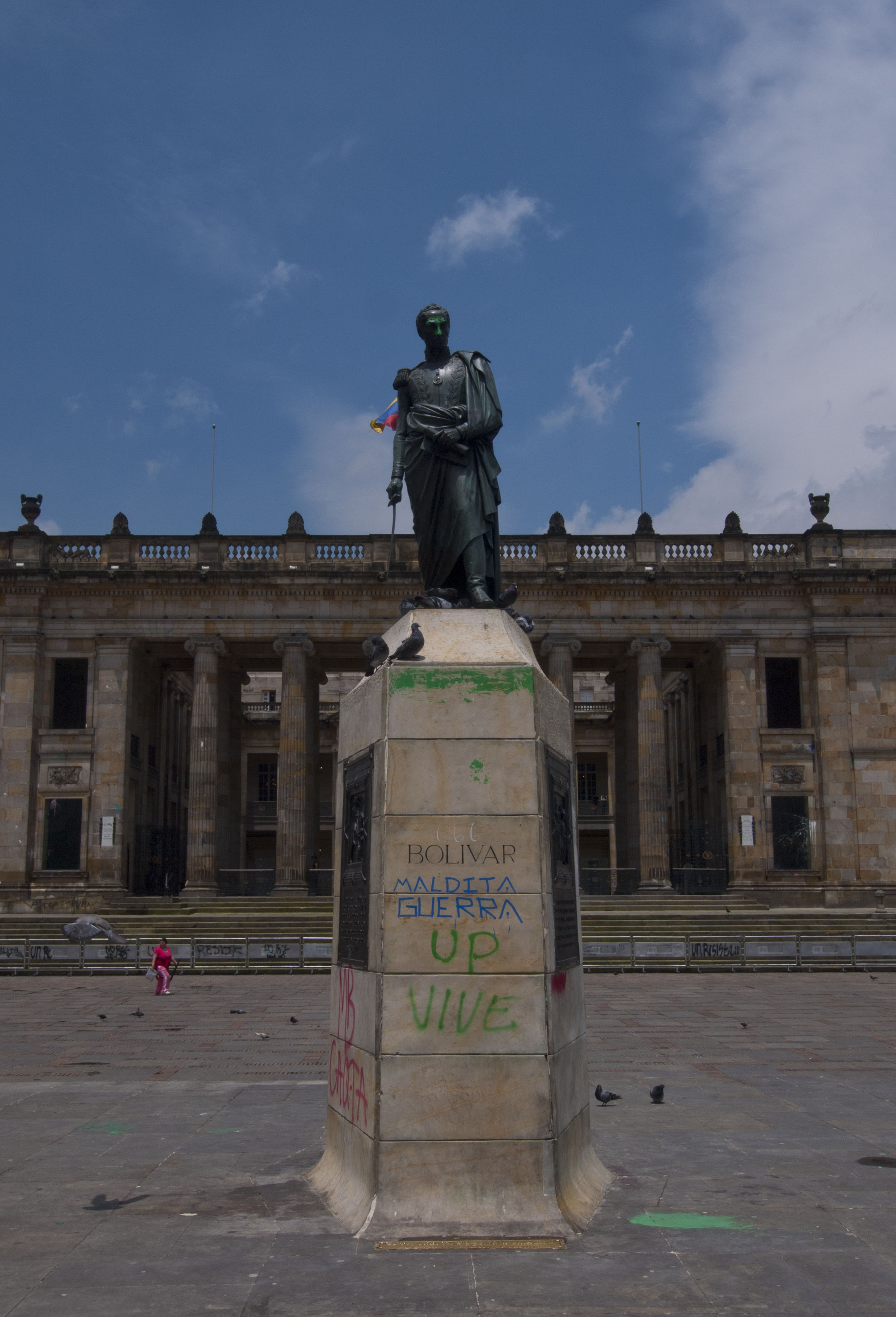 To the centre of La Candelaria is the main plaza, the Plaza de Bolivar with the regulation statue of Simon Bolivar in the middle. There had obviously been a demonstration recently as the statue and some of the surrounding buildings had streaks of paint on them. The Plaza contains the Catedral Primada and also the Capitolio Nacional, the seat of Congress.