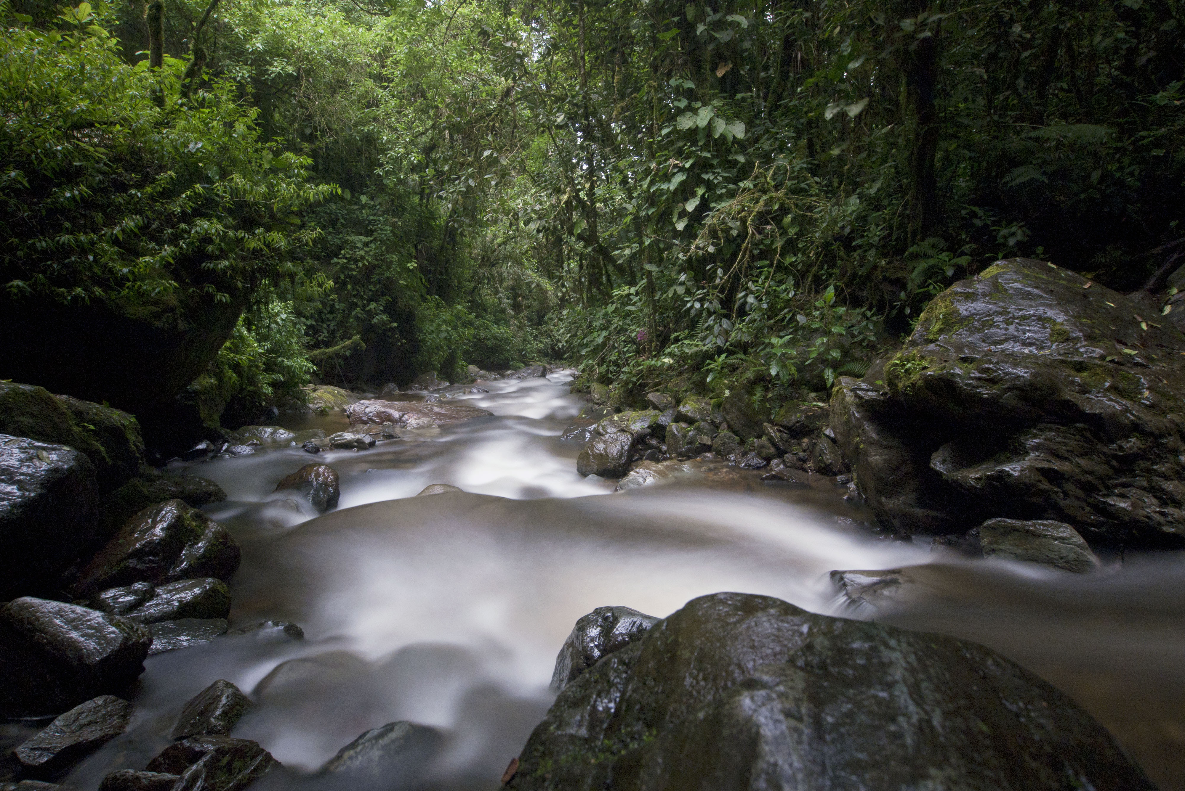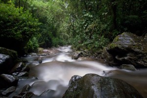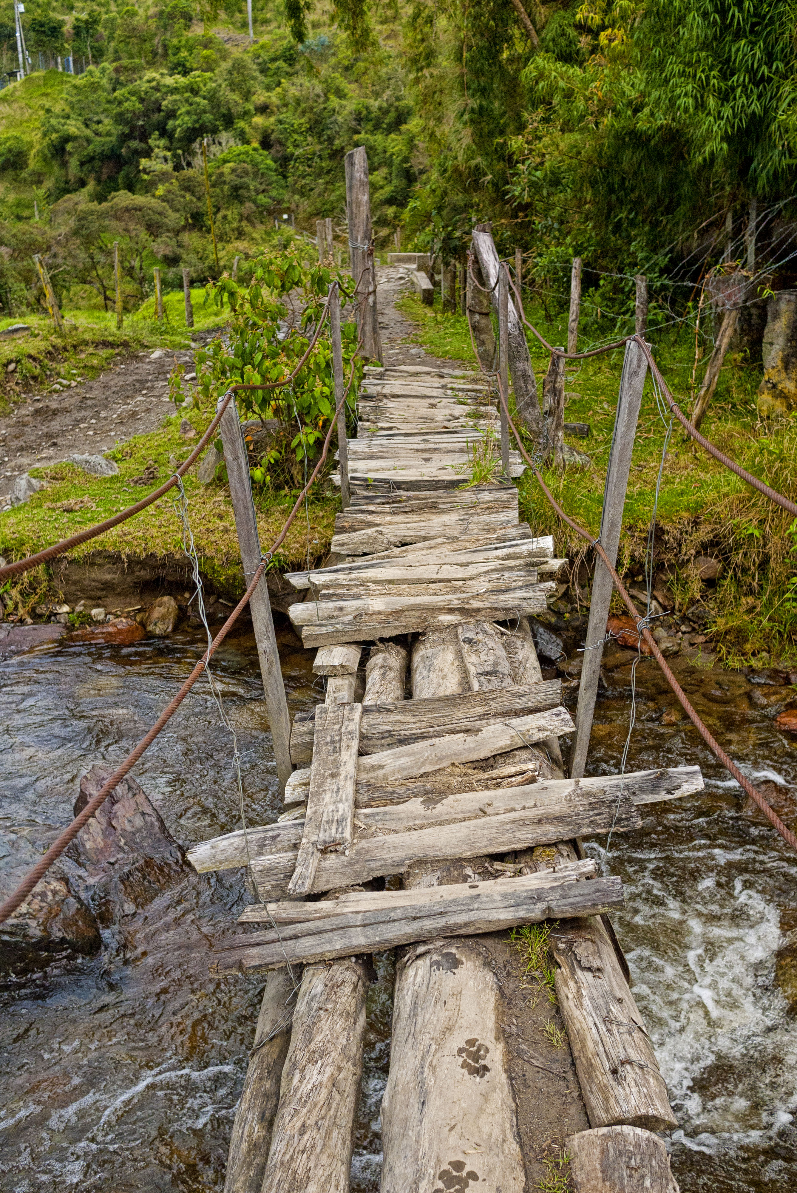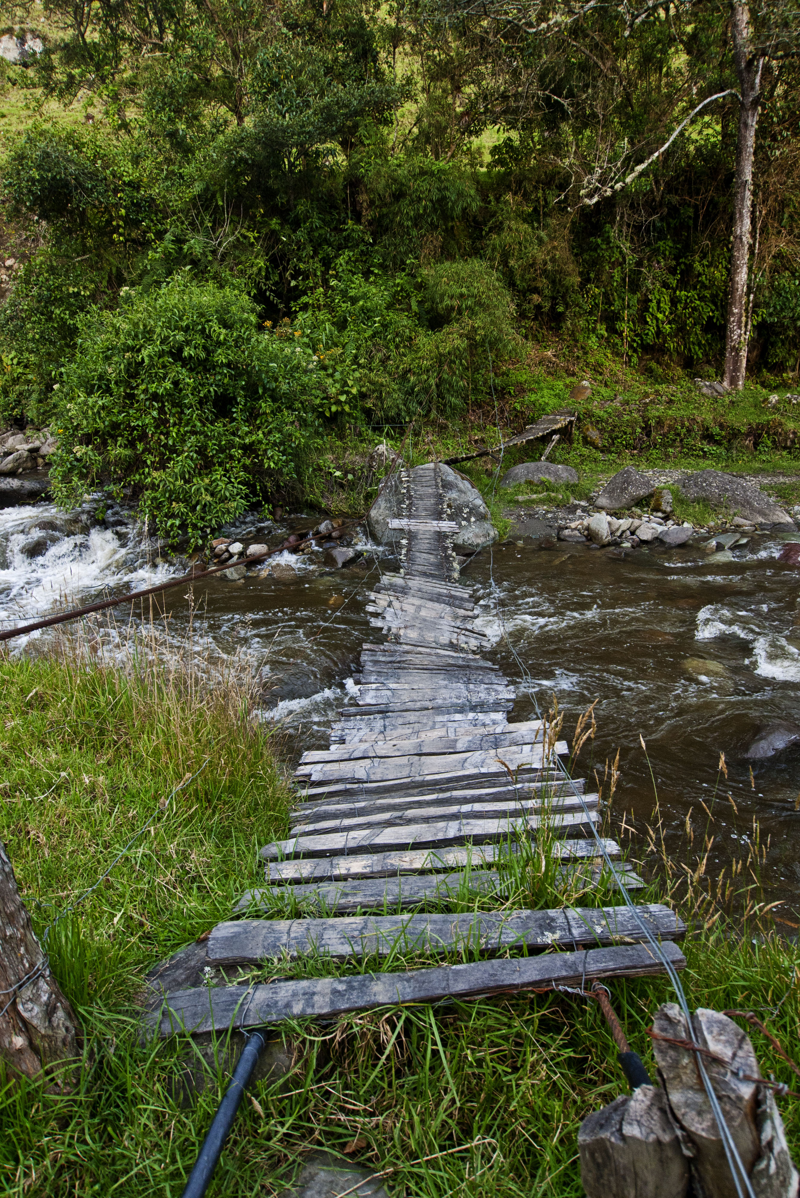 The hike started off on a muddy track through farmland studded with wax palms but after a few kilometres entered a cloud forest, following a mountain river. Once in the cloud forest the path criss-crosses the river and there are a number of fairly sketchy bridges to get across. The dog following us no problem running across the shaky suspension bridges but we were a little more cautious.