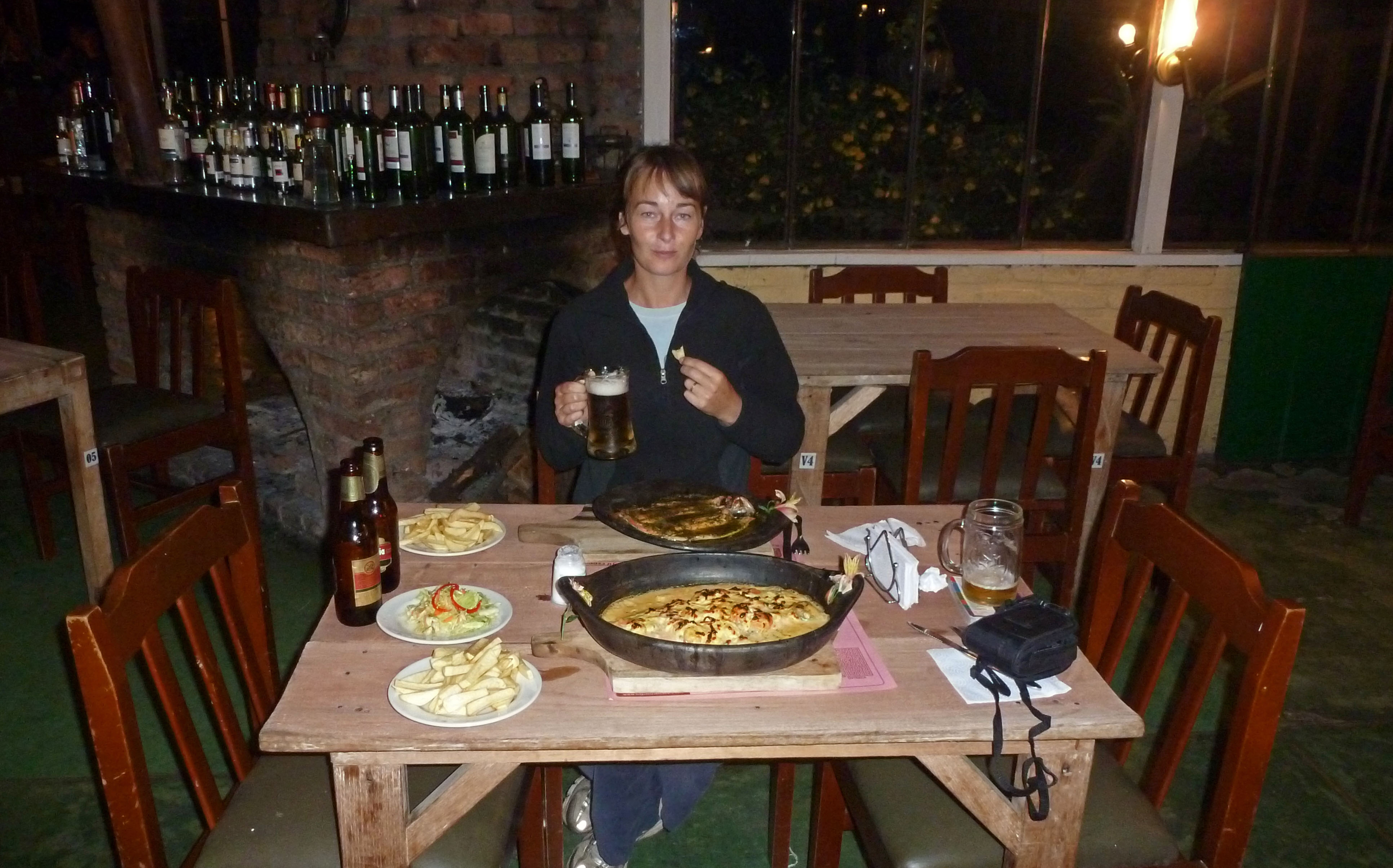 There is a trout farm in the village and we bought some trout from here for the fridge. It also means that the restaurants in this area serve fantastic fresh trout which we sampled a couple of ways. The first time we had it in a small mountain restaurant where it was served with Patacon and rice. Patacon is a big crisp made from Plantain. However at the restaurant where we stayed the cooking was a step up and we had some fantastic trout with great chips.
