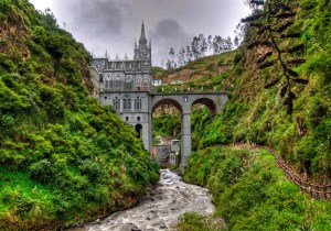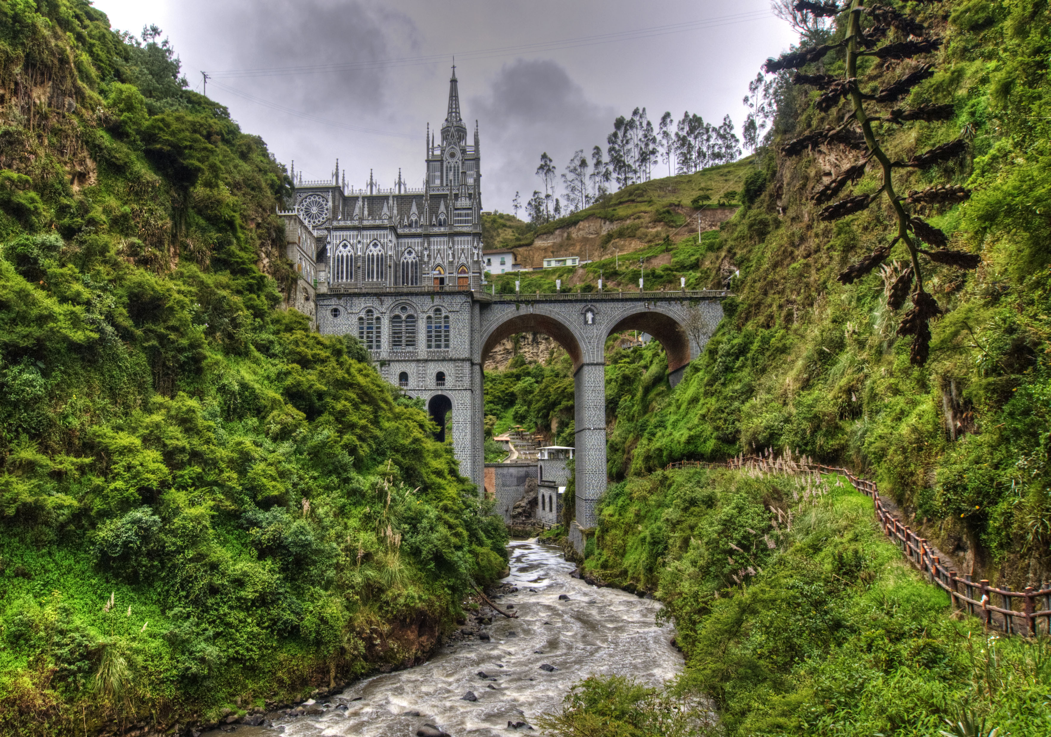 Near the border town of Ipiales is an amazing church built in a ravine which is a centre for pilgrimage from all over Colombia and Ecuador. The church is built over a rock where the image of the Virgin Mary is said to have appeared in the 18th century.
