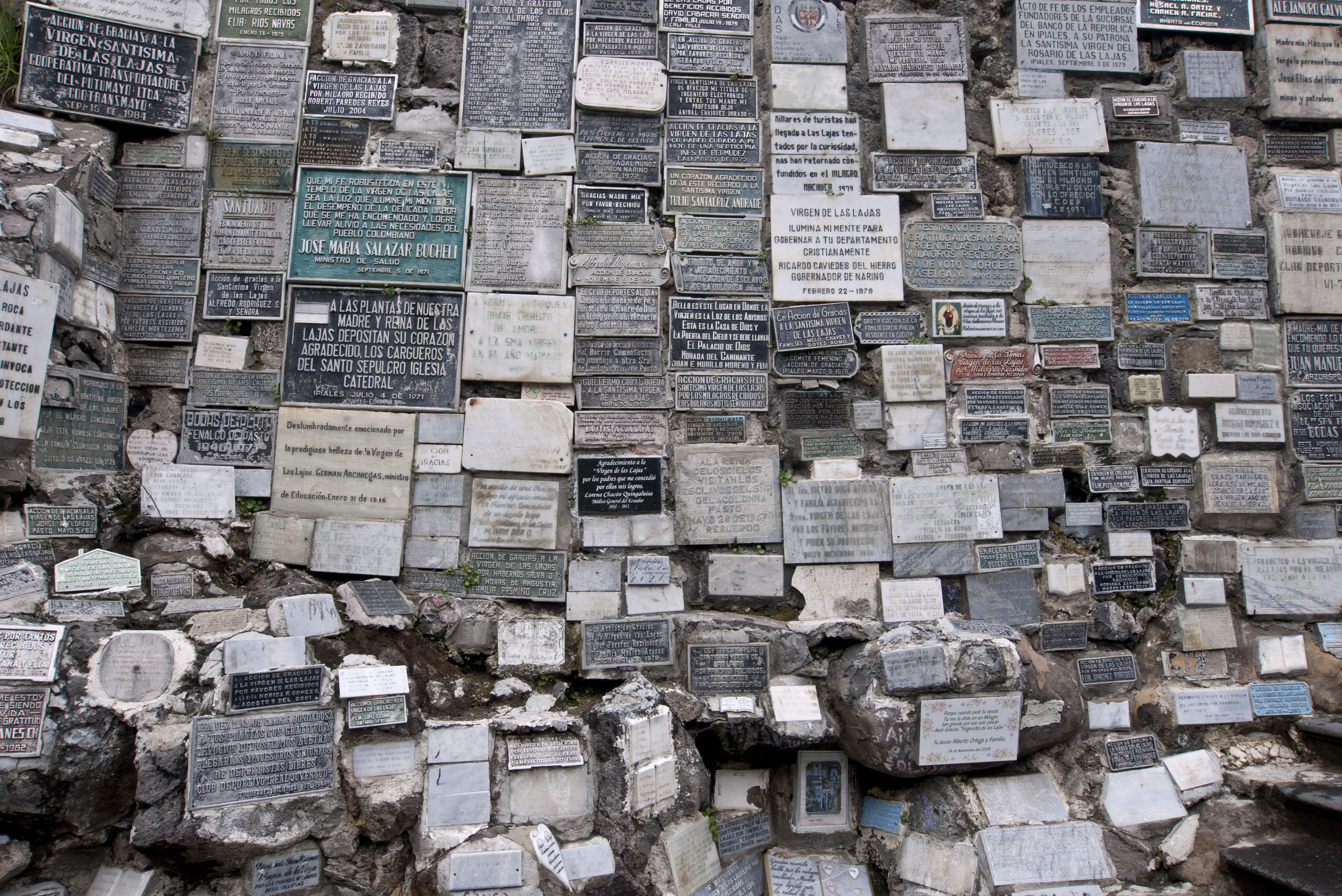 As you walk down into the ravine the rock walls are covered with plaques giving thanks for the help that Virgin Mary has given to families and individuals.