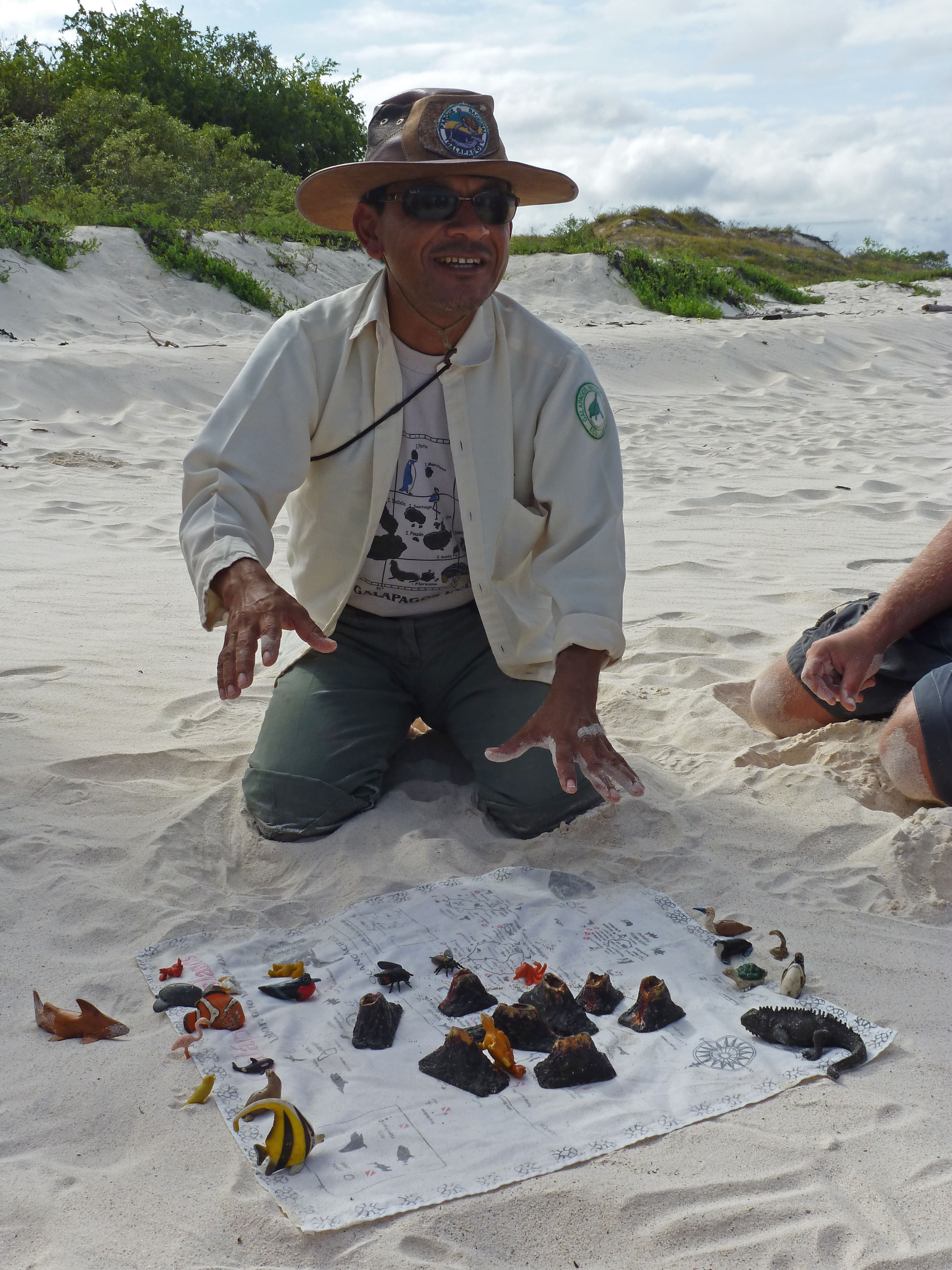 Our first visit was to a beach at a bay called Cerro Brurujo. Our guide, Juan, spent some time explaining the creation of the Galapagos from a volcanic hotspot under the pacific and the reasons for the spread of animals across the archipelago.