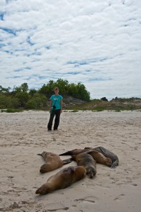 On the beach we found a lot of sealions (there are more than 10 thousand in the Galapagos) and some shore birds.