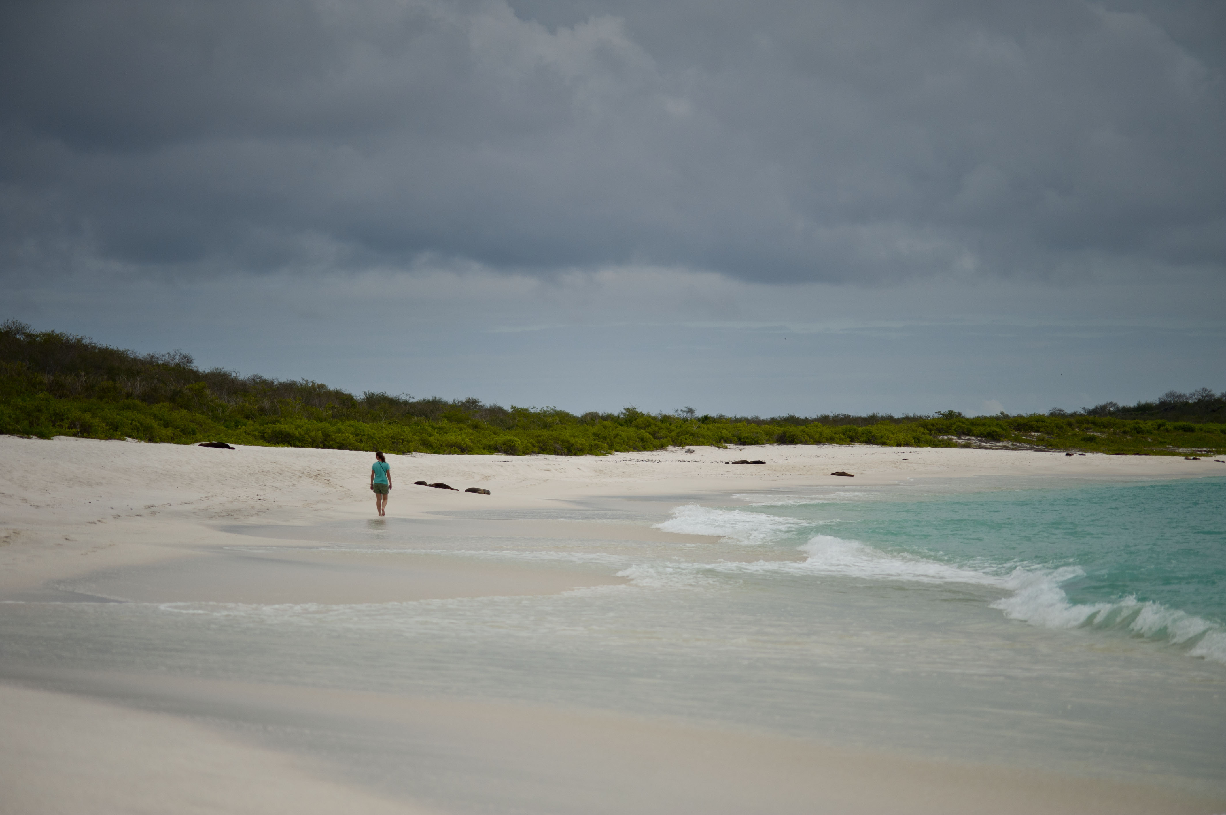 The beach was a long expanse of white sand with a huge number of Hood Mockingbirds