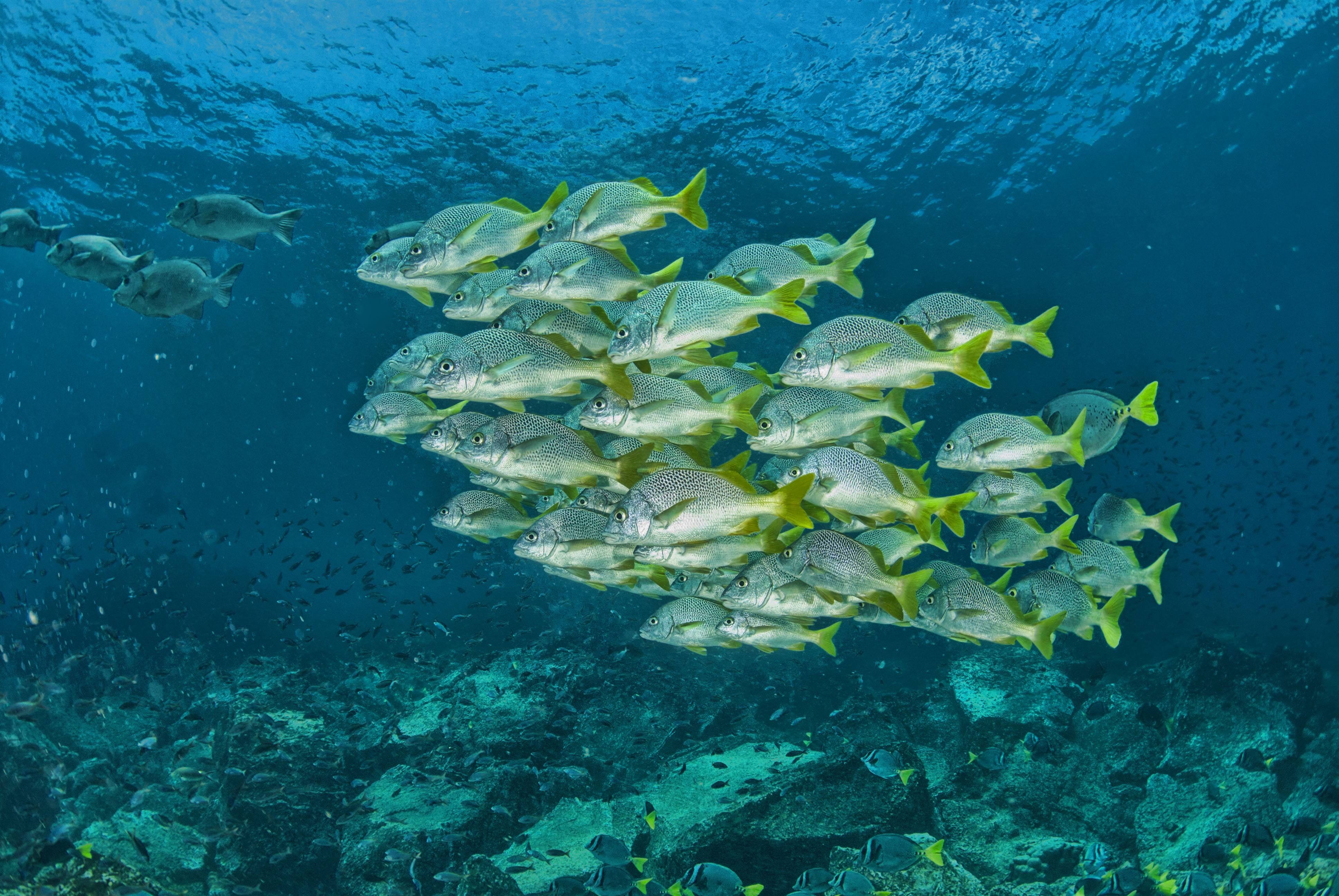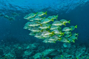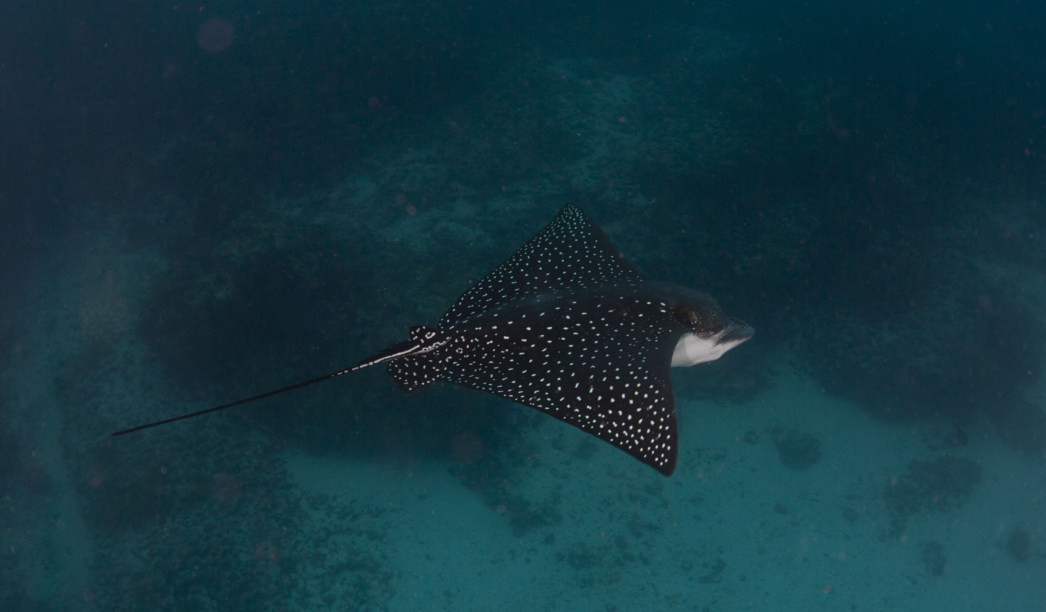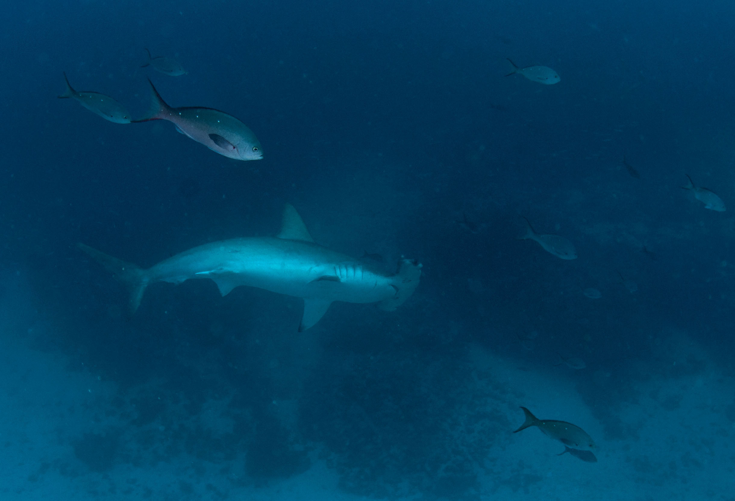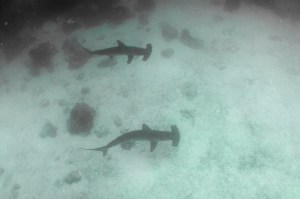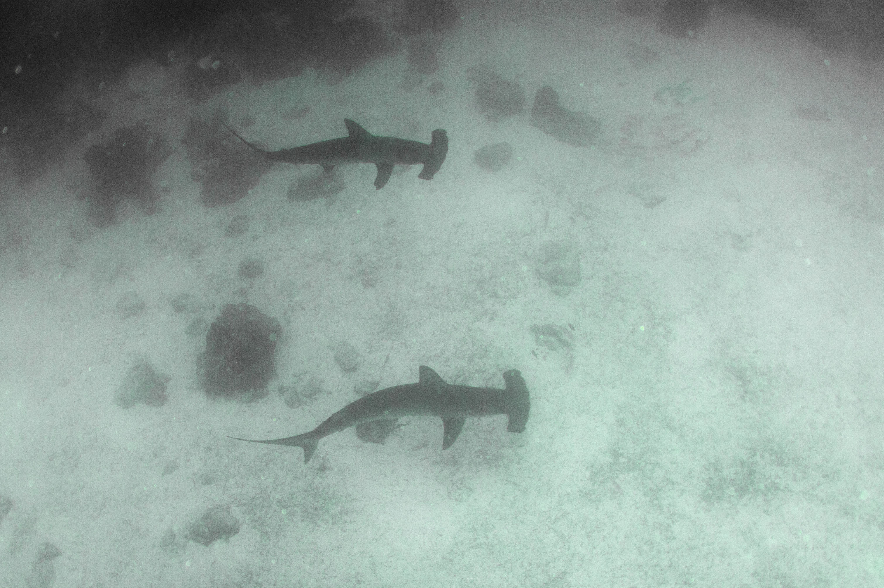 On the first day we dove at Gordon’s Rocks which is an extinct caldera where two peaks stick up above the water with a 35m or so deep bowl between them. We saw a number of scalloped hammerheads circling this bowl.